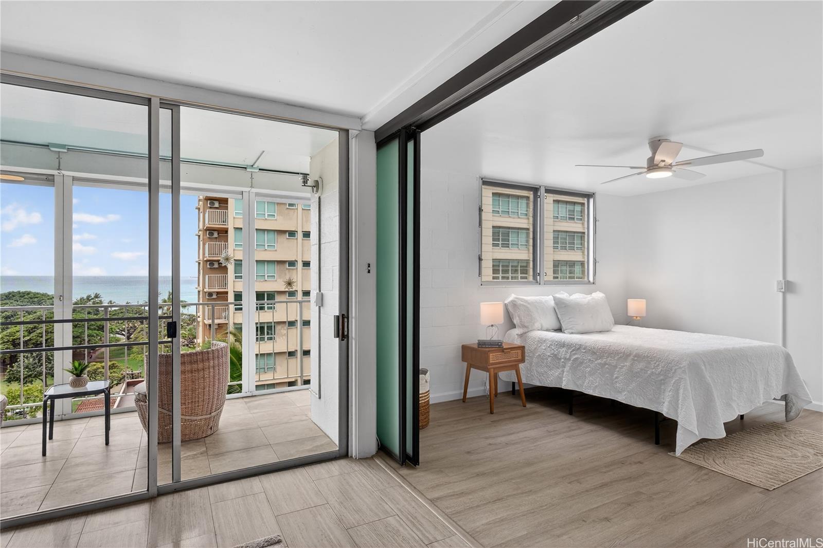 Pacific Ocean, Kapi‘olani Park, and Diamond Head from this coveted East Waikiki address just a block from