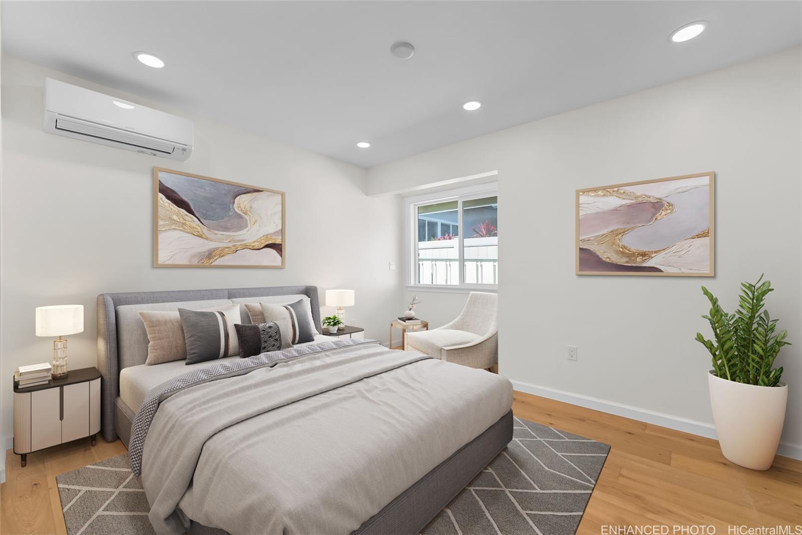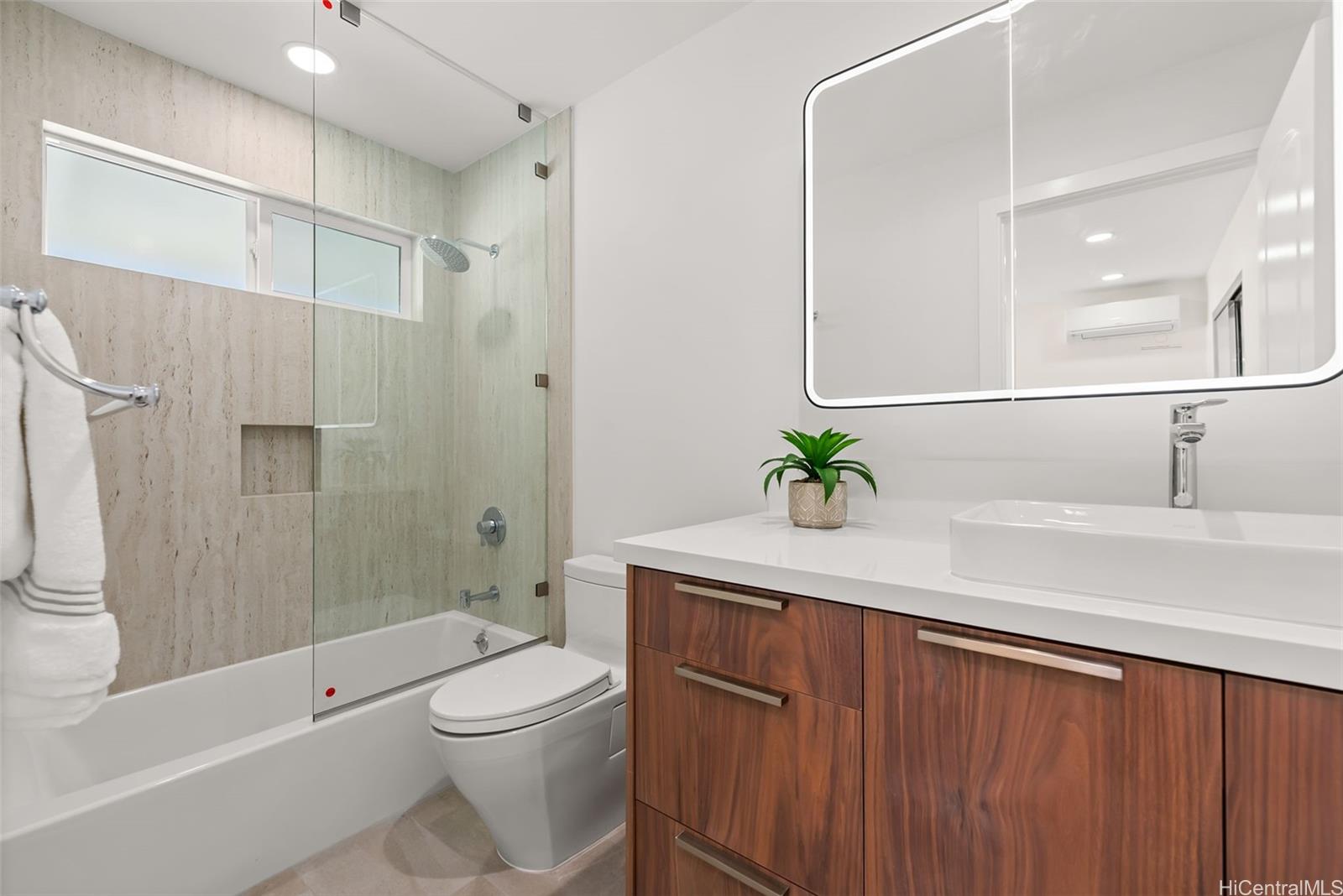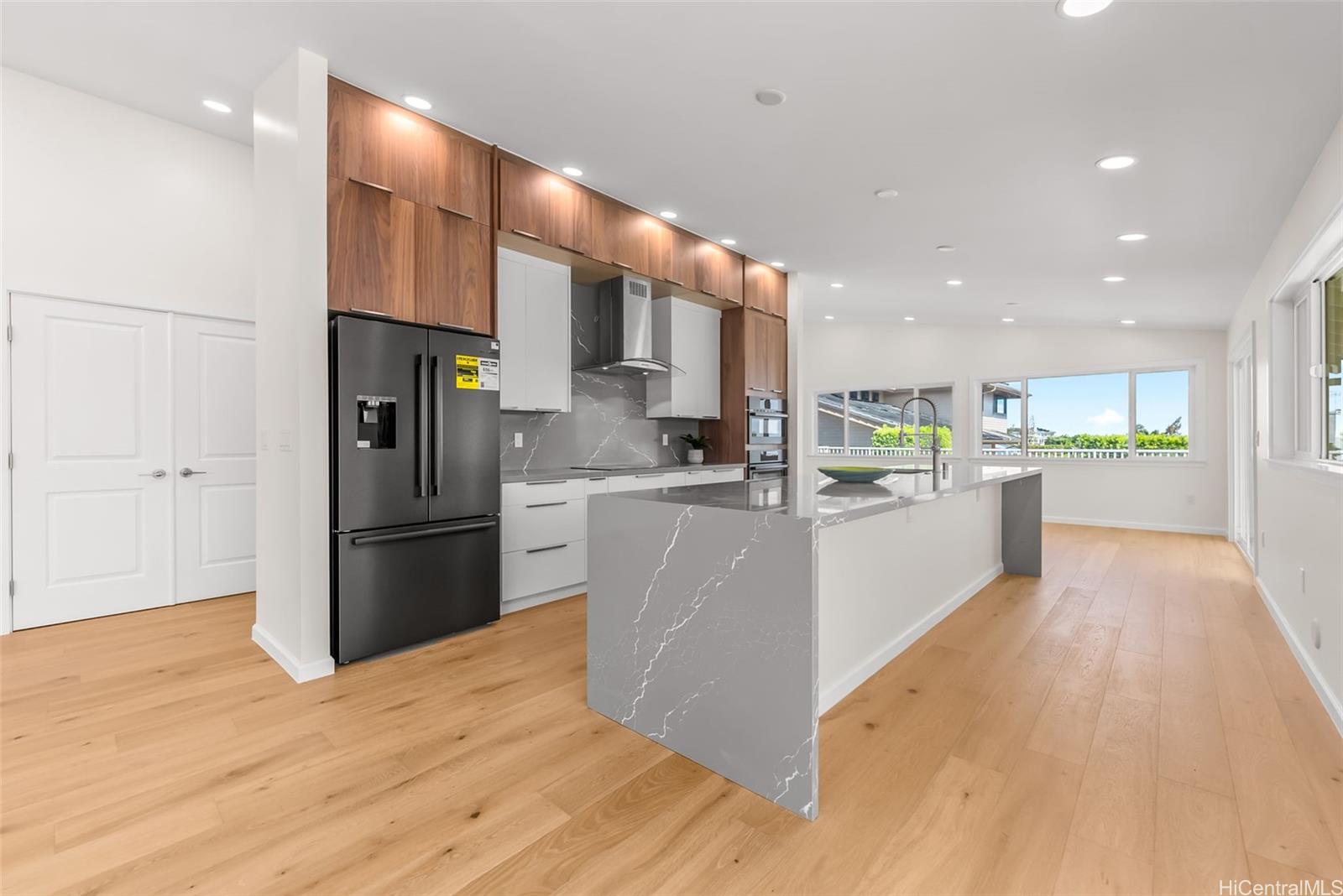 string(1067) "Nestled within the private/gated community of Waialae Iki V, this beautifully fully renovated single-level residence blends contemporary elegance with island living. Featuring three spacious bedrooms and three full bathrooms, this home offers a seamless blend of luxury, functionality, and comfort. Step inside to discover soaring ceilings and rich wood flooring that flows effortlessly throughout the open-concept living spaces. All bathrooms are finished with sleek porcelain tiles, Toto toilets, and frameless glass-enclosed showers, creating a spa-like experience in every suite. At the heart of the home is the designer kitchen outfitted with high-end, natural wood-faced cabinetry, a striking waterfall-style island, and brand-new luxury appliances. Enjoy an abundance of natural light thanks to strategically placed skylights and quality aluminum roof shingles that add both style and durability. The home is surrounded by tropical landscaping with an open lawn, covered lanai, and an expansive open deck—perfect for indoor-outdoor living and entertaining."