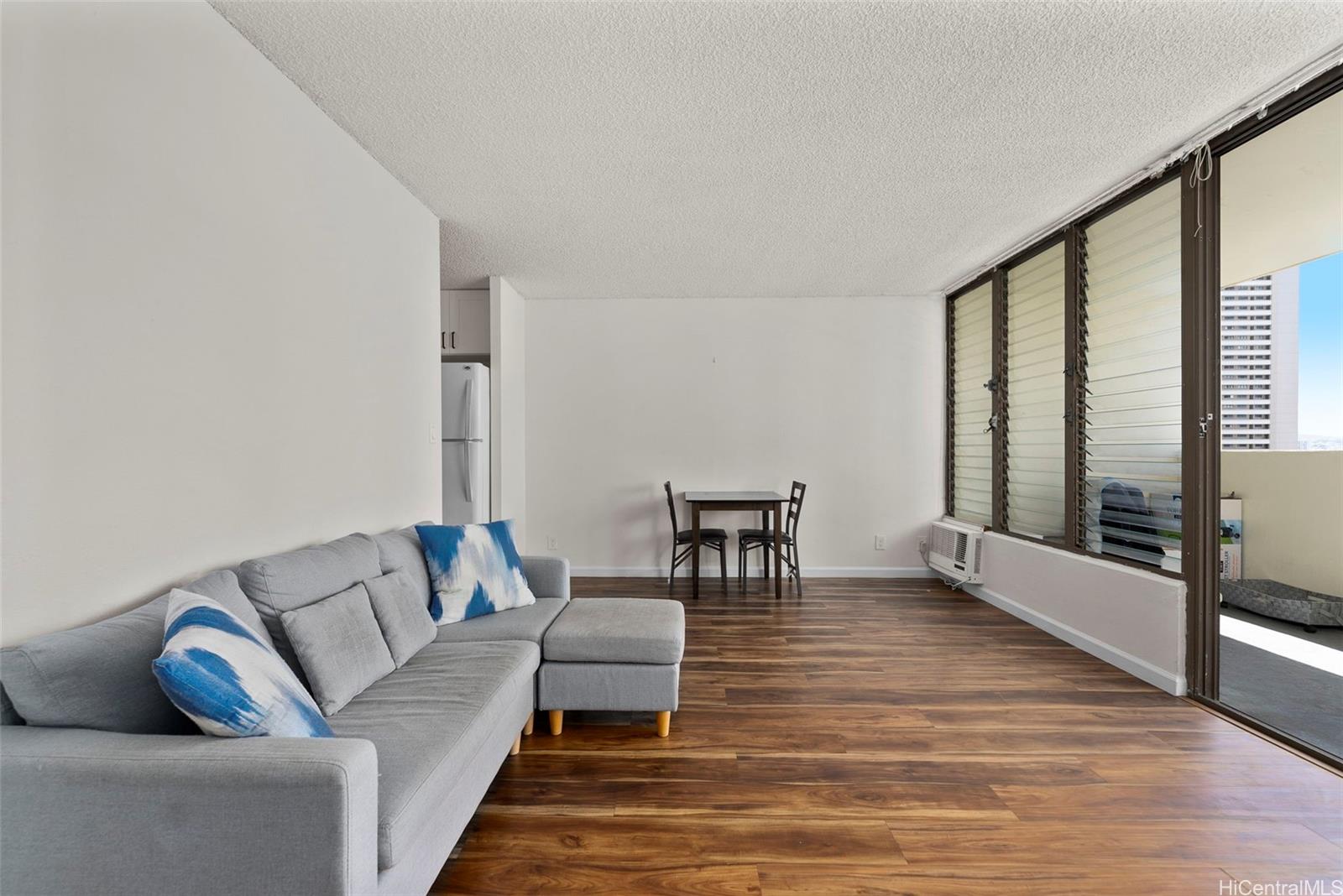 string(803) "Welcome to La Casa, ideally situated in the vibrant Waikiki. This spacious 1-bed, 1-bath residence offers 559 sq ft of interior living plus a generous 104 sq ft lanai—perfect for enjoying morning coffee or evening breezes. Inside, you’ll find tasteful updates throughout: a modern kitchen, renovated bathroom, stylish vinyl flooring, new window screens, and the convenience of an in-unit washer/dryer. The east-facing orientation allows for natural light without the afternoon heat, complemented by cool trade winds and AC comfort. Enjoy sweeping city, mountain, and ocean views from your private lanai, and rest easy with secured, covered parking. Whether you’re looking for a full-time home or a convenient island retreat, this unit combines comfort, location, and value in the heart of Waikiki."