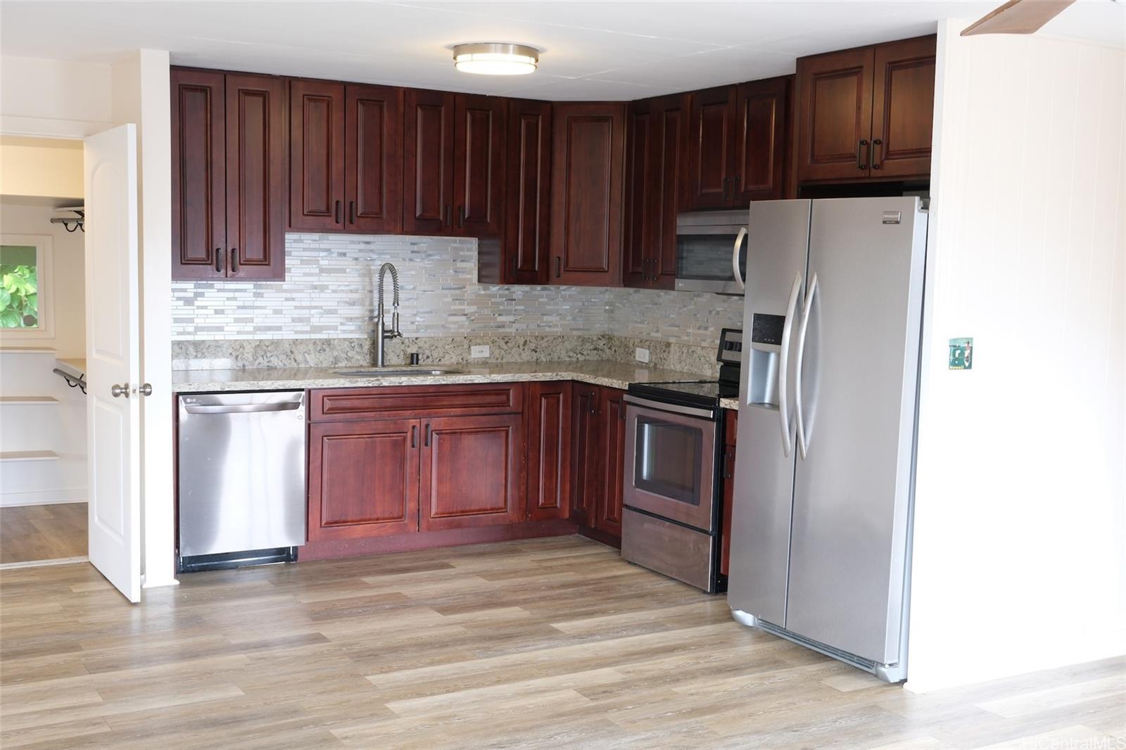 [0] => Aloha and welcome to Wahiawa Heights! Discover this charming 3-bedroom, 2-bath home with a bonus room tucked away in a quiet Wahiawa neighborhood on a dead-end Oahu’s Lovingly maintained and freshly painted, this residence offers a lush backdrop. Enjoy the soothing sounds of nature from the spacious outdoor patio, ideal for BBQs, morning coffee, or unwinding after a long day. Inside, an open-concept kitchen and living area create an inviting flow for gatherings and daily living. A split air conditioning unit in the living area and ceiling fans throughout ensure cool comfort year-round. The home offers private parking for 2–3 cars within the lot, plus street parking. A special opportunity to own a well-kept home surrounded by nature, all within close reach of schools, shops, and central Oahu’s conveniences.  ENHANCED virtual furniture shown in some photos for staging.