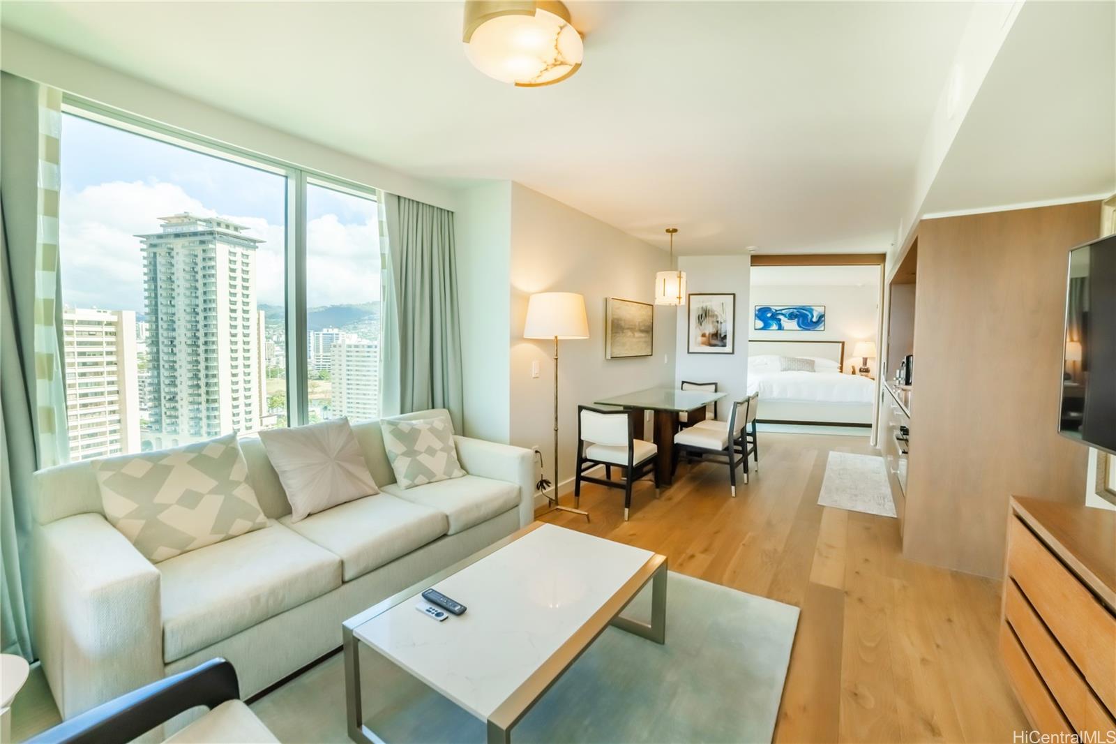 Welcome to luxury living in the heart of Waikiki! This high-floor, fully furnished corner studio in the prestigious Ritz-Carlton Residences Tower 2 offers sweeping ocean views and refined elegance. Unit 2001 is one of three large studio residences that boast the perfect blend of comfort, sophistication, and convenience. Enjoy world-class amenities including stunning pool, a full-service spa, concierge, valet, fitness center, and more. Indulge in award-winning dining just steps from your door at Sushi Sho, La Vie, Quiora, and Dean & DeLuca.Currently designated as a personal residence, the unit benefits from lower property tax rates, but you also have the option to join the hotel rental program for income potential when not in use. Whether you're seeking a serene personal retreat or a luxury investment, this residence is a rare opportunity in one of Honolulu’s most iconic buildings. Listing by: Luxury Homes International (808) 387-9892