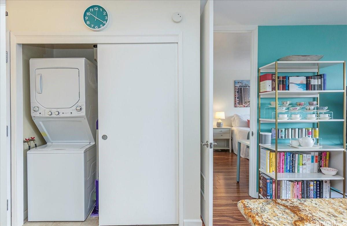 string(1050) "Experience elevated living in this stunning high-floor unit, located on the coveted cooler side of the building. Revel in breathtaking views of vibrant city lights, the majestic mountain range, gorgeous rainbows, and the Ala Wai canal. This well-maintained, move-in ready condition 1-bdrm, 1-bath residence features an upgraded kitchen and flooring, complemented by an efficient open floor plan. Enjoy the spacious lanai, ideal for relaxation at golden hour. Modern conveniences include central AC, an in-unit washer/dryer, and a separate storage locker. Four Paddle is a highly regarded, pet-friendly, secure high-rise known for its low-key charm. The 5th flr. boasts a fantastic recreation area with a large heated pool, expansive sundeck, Jacuzzi, sauna, BBQ facilities, and outdoor dining area. With your own assigned parking space and 6 guest parking spots, hosting visitors is a breeze. Located just a short distance from the world-famous Waikiki beach and steps away to bus lines, shops, and eateries. The maintenance fee covers all utilities."