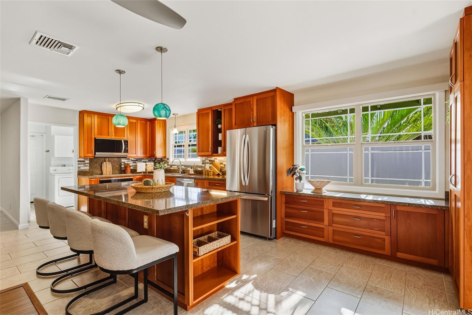 Welcome to a place where comfort, warmth, and Kailua living truly come together. Nestled in the well-loved Kaopa neighborhood of Kailua, this 4-bedroom, 2-bath home offers nearly 2,000 sq. ft. of inviting interior space on a generous 6,000 sq. ft. lot. Cool central AC and abundant natural light create an atmosphere of ease and belonging. Inside, a second family room provides the flexibility every household appreciates, whether you imagine it as a play space, media room, or a cozy retreat for gatherings. Step out to the covered lanai, perfect for weekend mornings, evening dinners, or simply enjoying the breeze. The fully fenced yard offers privacy, and room to play, garden, or relax. Thoughtfully upgraded with an owned photovoltaic system, this home is designed for both beautiful living and long-term peace of mind. Located just minutes from schools, grocery stores, and Kailua’s favorite local restaurants, it brings everyday convenience right to your doorstep. Listing by: Coldwell Banker Realty (808) 291-2435