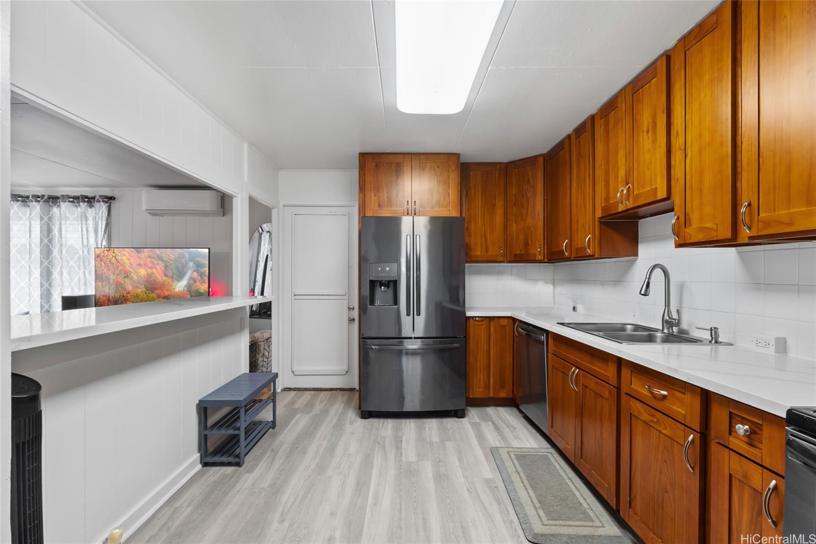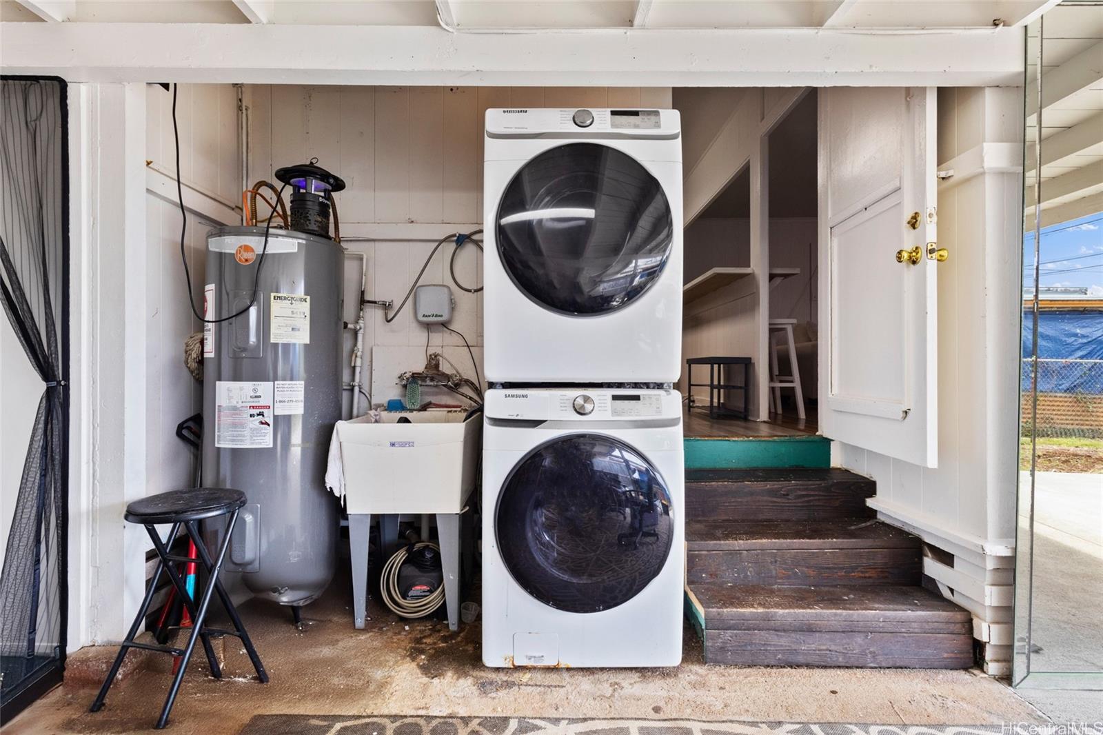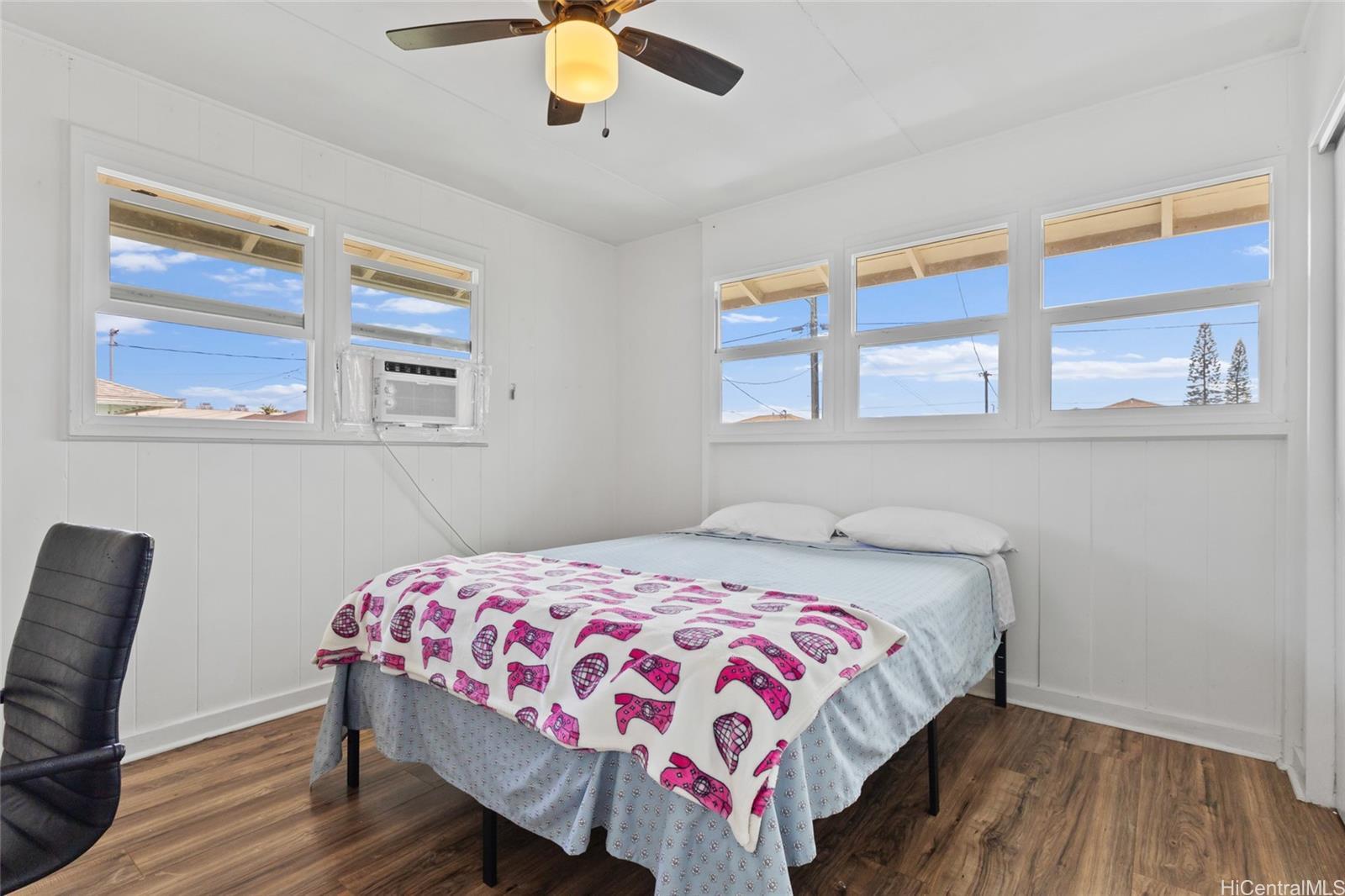 string(444) "No HOA – Single-family home with a yard and a separate 1-bedroom unit in the back—ideal for extended family or rental income, previously rented out for $1500/month. Remodeled throughout in 2020 with a new roof, new windows, updated kitchen, and appliances. New paved driveway added, 24 owned solar panels, and split AC systems added in the main home and in the separate 1 bedroom. Conveniently located just minutes from Schofield Barracks."