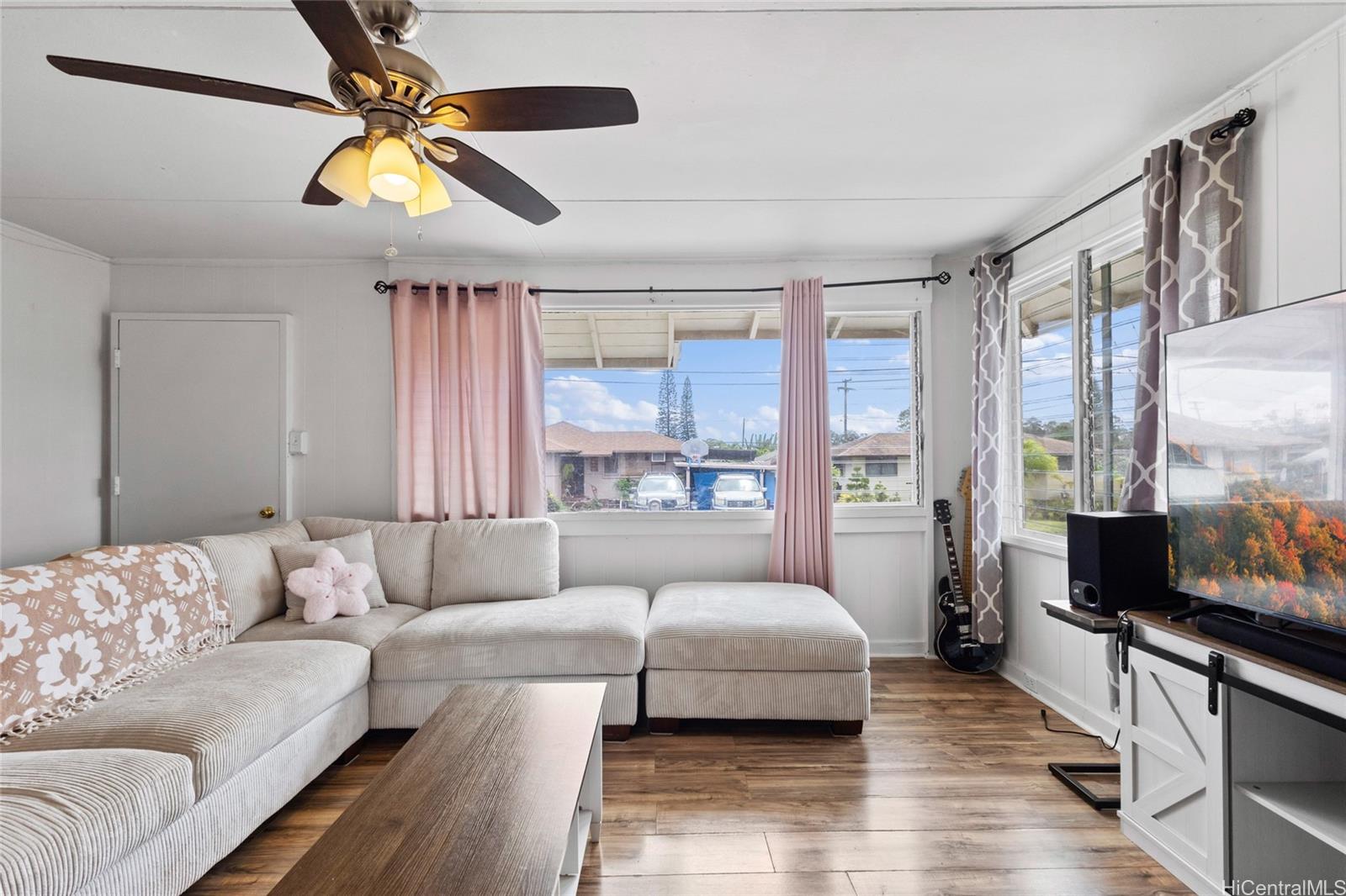 No HOA – Single-family home with a yard and a separate 1-bedroom unit in the back—ideal for extended family or rental income, previously rented out for $1500/month. Remodeled throughout in 2020 with a new roof, new windows, updated kitchen, and appliances. New paved driveway added, 24 owned solar panels, and split AC systems added in the main home and in the separate 1 bedroom. Conveniently located just minutes from Schofield Barracks. Listing by: eXp Realty (808) 725-2794
