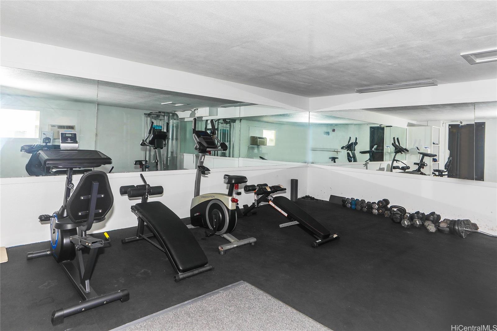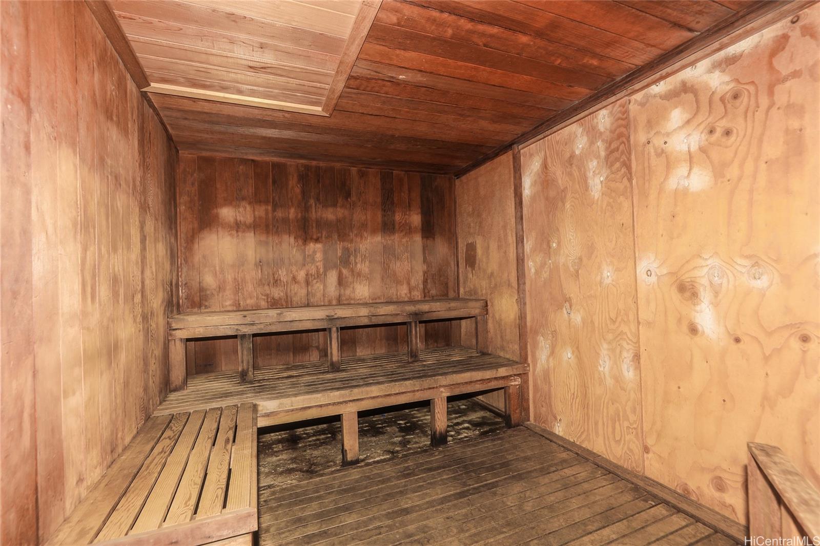 [0] => One bedroom one bath condominium unit in Aloha Lani project for sale. One parking stall and small storage locker are included. The apartment has a great view of the mountains and Manoa Valley. The project is well managed and has a mix of residents and visitors. The property has many amenities, including a pool, exercise room, sauna, barbeque area, and is secure, with guard service onsite. Coin-operated laundry center is also available onsite. Property is vacant so it is easy to see.