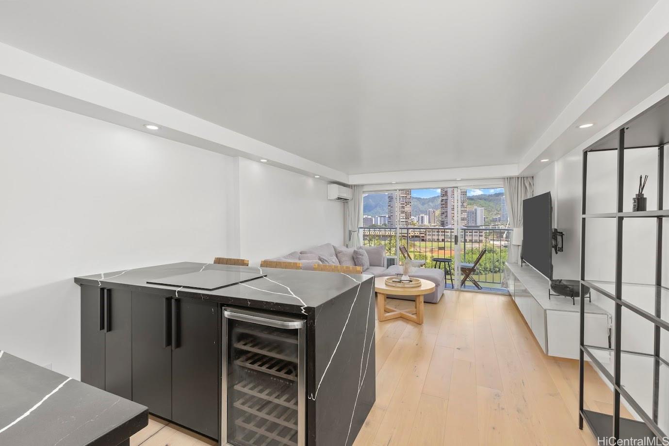 Extra larger unit with premier custom remodeled. 100% insured building this beautifully updated, fully furnished unit offers stunning, unobstructed canal and mountain views. With an extended living room featuring maple hardwood floors and a chef’s kitchen with quartz countertops, induction cooktop, wine cooler, and built-in appliances, this space is both stylish and functional. Split AC in the living room and window AC in the bedroom ensure year-round comfort. Freshly painted and in excellent condition, it includes one assigned covered parking and additional storage. Located in the heart of Waikiki, Aloha Lani provides easy access to shopping, dining, and entertainment. The building boasts a newly upgraded pool, deck, BBQ areas, 24/7 security, and amenities including a gym, sauna, community laundry, and game room. This is a fantastic opportunity for your own private retreat. Pet-friendly (please verify with the association). This is a rare chance to own your own private retreat and enjoy all that world famous Waikiki has to offered. Tax assessment is based on 2024. Unit has been rented out for 30 day rental min around 3000/month previously prior to Sep 2025. Listing by: Locations LLC (808) 735-4200
