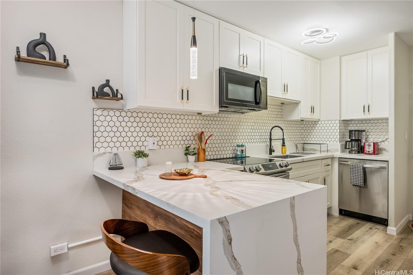 [0] => Stunning 2-Bedroom Condo in Prime Waikiki Location! Welcome to 222 Kaiulani 208, a beautifully remodeled 2-bedroom, 1-bathroom condo with a parking stall. This modern residence offers: Open-concept living space with city views from the private lanai. Well-equipped kitchen with stainless appliances, shaker cabinets, granite countertops, modern backsplash and vinyl plank throughout. Just steps away from Waikiki Beach, this location is perfect for enjoying sun, sand and surf. Explore nearby attractions including Diamond Head, world-renowned dining and shipping along Kalakaua that includes a variety of restaurants, shops and nightlife with various entertainment options.