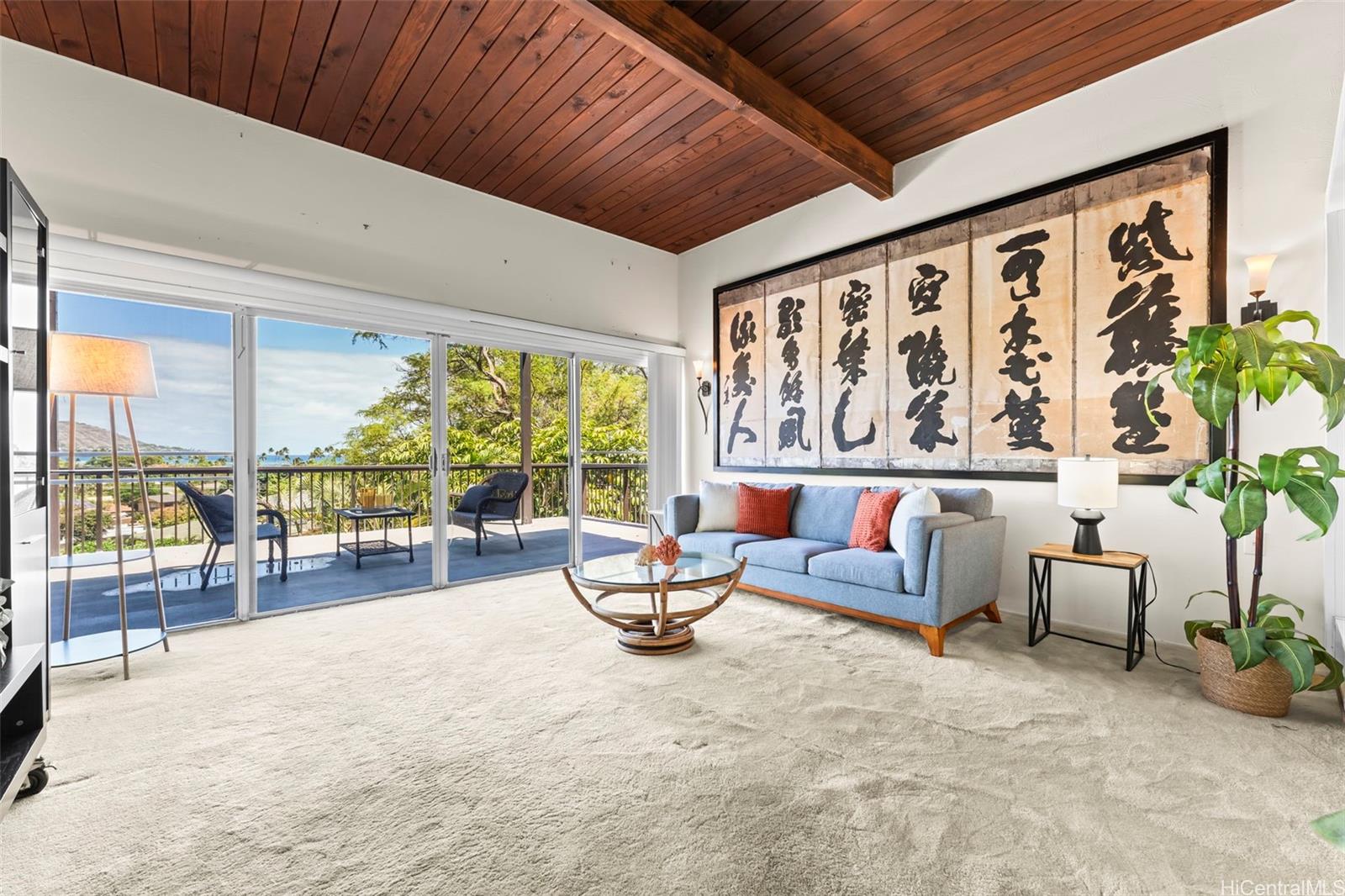 Niu Valley treetop haven offering sweeping Ocean and Koko Head views. The nearly 14,000 sq ft hillside lot delivers rare privacy, while an expansive wrap-around lanai captures sunrise color, sunset glow, and steady trade-wind breezes. A flexible 4-bed, 3-bath layout is currently arranged as 3/2 plus a separate 1/1. The bright living spaces framed by floor-to-ceiling glass, and 16 owned PV (solar) panels help keep energy bills low. Soaring ceilings, creative architectural lines, and solid bones provide the ideal canvas for your personal updates. Minutes to beaches, top schools, and Hawai‘i Kai shopping—yet a world apart—experience tranquil island living in the treetops of Niu Valley. Listing by: Berkshire Hathaway HmSvc HI RE (808) 306-7242