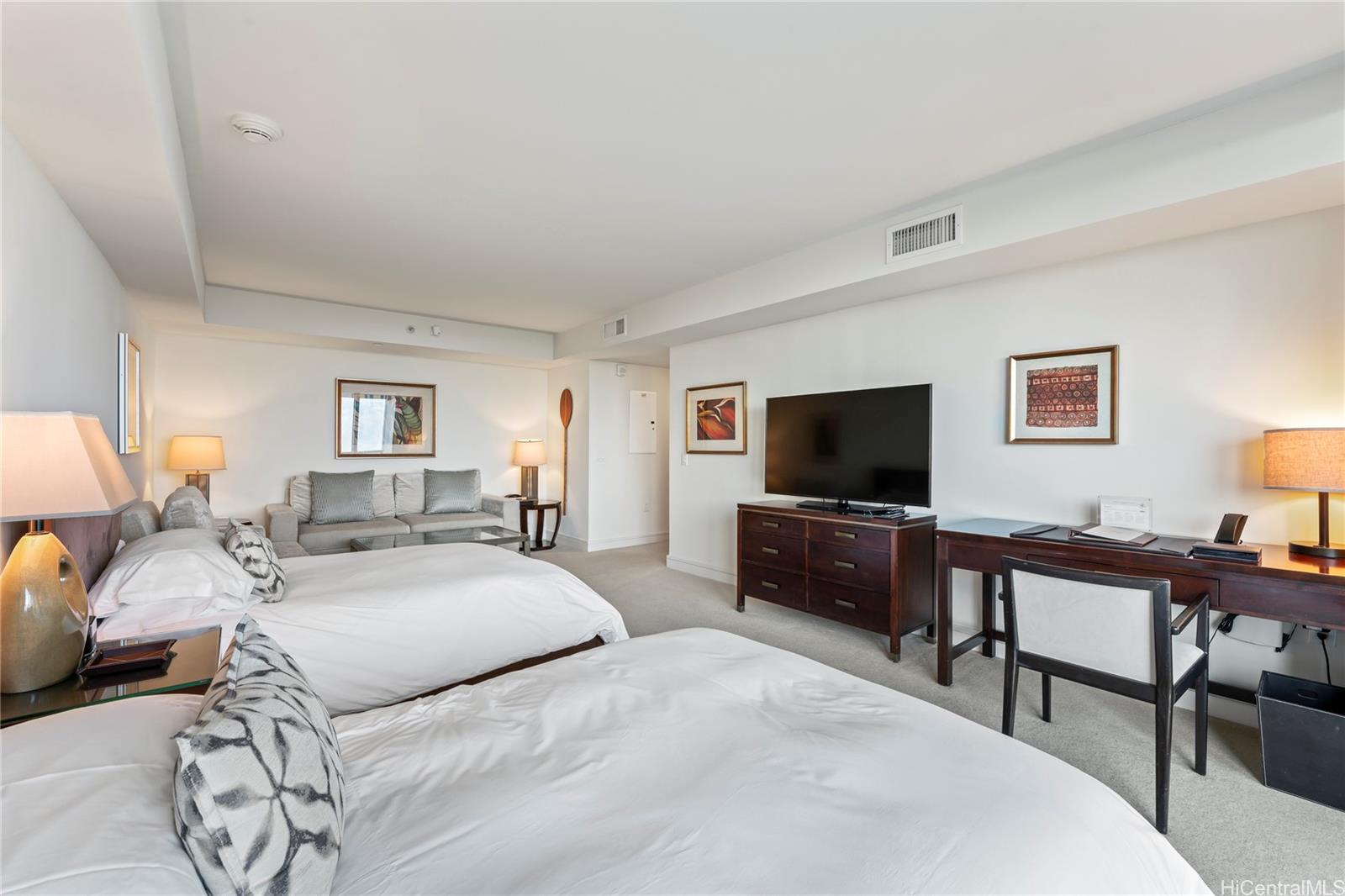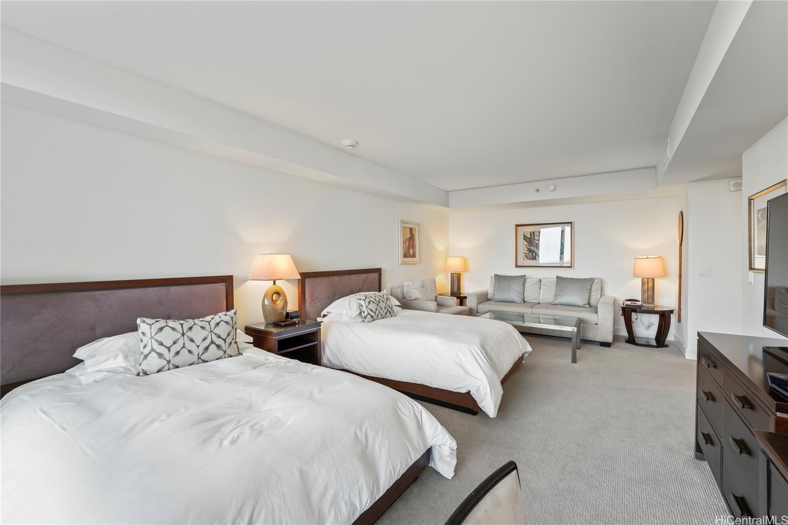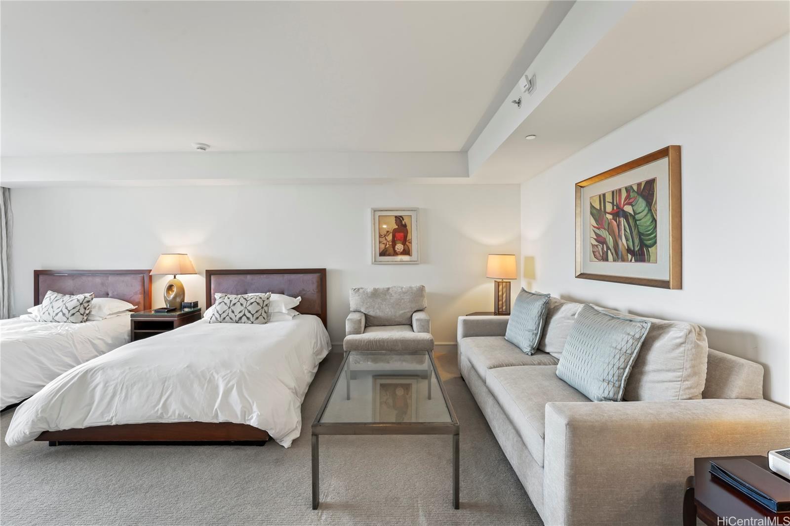 Rarely available studio with 2 beds! Enjoy luxury living at Ka La'i Waikiki Beach, LXR Hotels & Resorts Hotel/Condo! (former Trump International Hotel Waikiki) This Studio unit comes fully furnished with all linens & Kitchenware and Ocean and Mountain View! Top notch amenities include infinity pool, concierge, valet parking and a full service spa. Including in purchase are upscale appliances, granite counter tops and travertine tile flooring. Steps away from Waikiki's famous white sand beaches. Listing by: Seven Signatures International (808) 683-7888