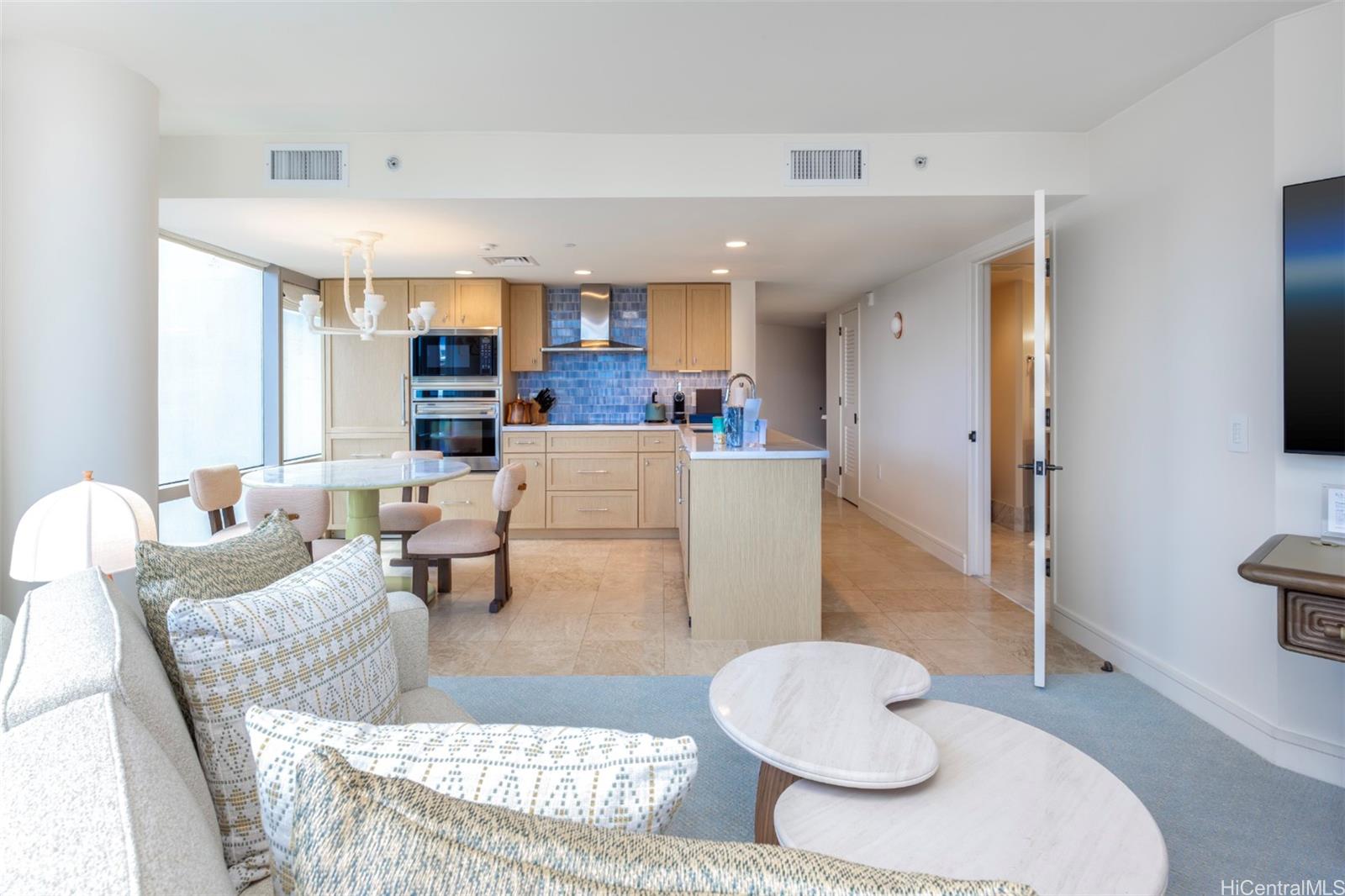 string(856) "Ka La'i Waikiki Beach, formerly Trump International Hotel Waikiki, stands as an icon of luxury living in Honolulu. This 22nd floor 1-bedroom corner residence has just received the hotel renovation package, with luxurious upgrades including new furniture, kitchen and bathroom cabinetry, counter-tops, carpet, drapes, lighting, artwork, and more. Enjoy dynamic views of paradise, stretching from the majestic Ko'olau Mountains to the Pacific Ocean. A large corner lanai adds the perfect place to enjoy indoor/outdoor living while taking in the sunrise. Situated along Oahu's southern coastline at the entrance of Waikiki, this superb location puts you just across from world-famous Waikiki Beach, where turquoise ocean waters, sandy beaches, and water activities await. This residence is in hotel rental program. Listing includes enhanced, zoomed-in photos."