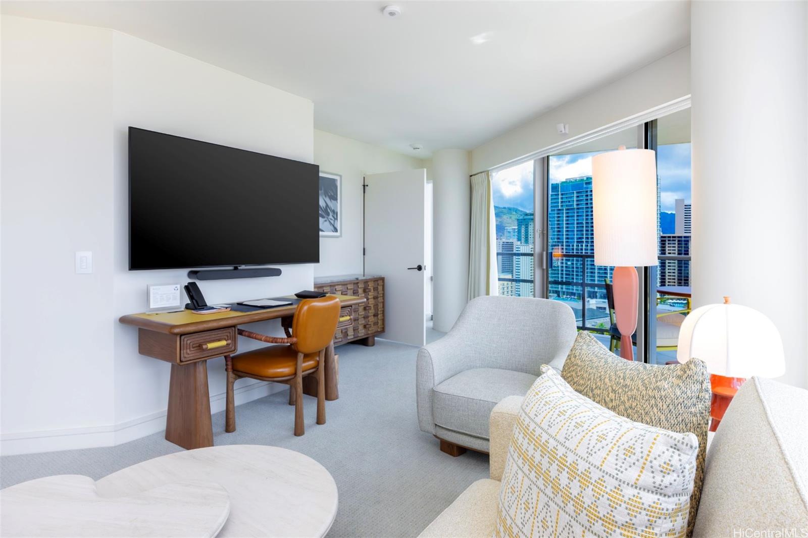 Ka La'i Waikiki Beach, formerly Trump International Hotel Waikiki, stands as an icon of luxury living in Honolulu. This 22nd floor 1-bedroom corner residence has just received the hotel renovation package, with luxurious upgrades including new furniture, kitchen and bathroom cabinetry, counter-tops, carpet, drapes, lighting, artwork, and more. Enjoy dynamic views of paradise, stretching from the majestic Ko'olau Mountains to the Pacific Ocean. A large corner lanai adds the perfect place to enjoy indoor/outdoor living while taking in the sunrise. Situated along Oahu's southern coastline at the entrance of Waikiki, this superb location puts you just across from world-famous Waikiki Beach, where turquoise ocean waters, sandy beaches, and water activities await. This residence is in hotel rental program. Listing includes enhanced, zoomed-in photos. Listing by: Sachi HI Pacific Century Prop. (808) 226-5030