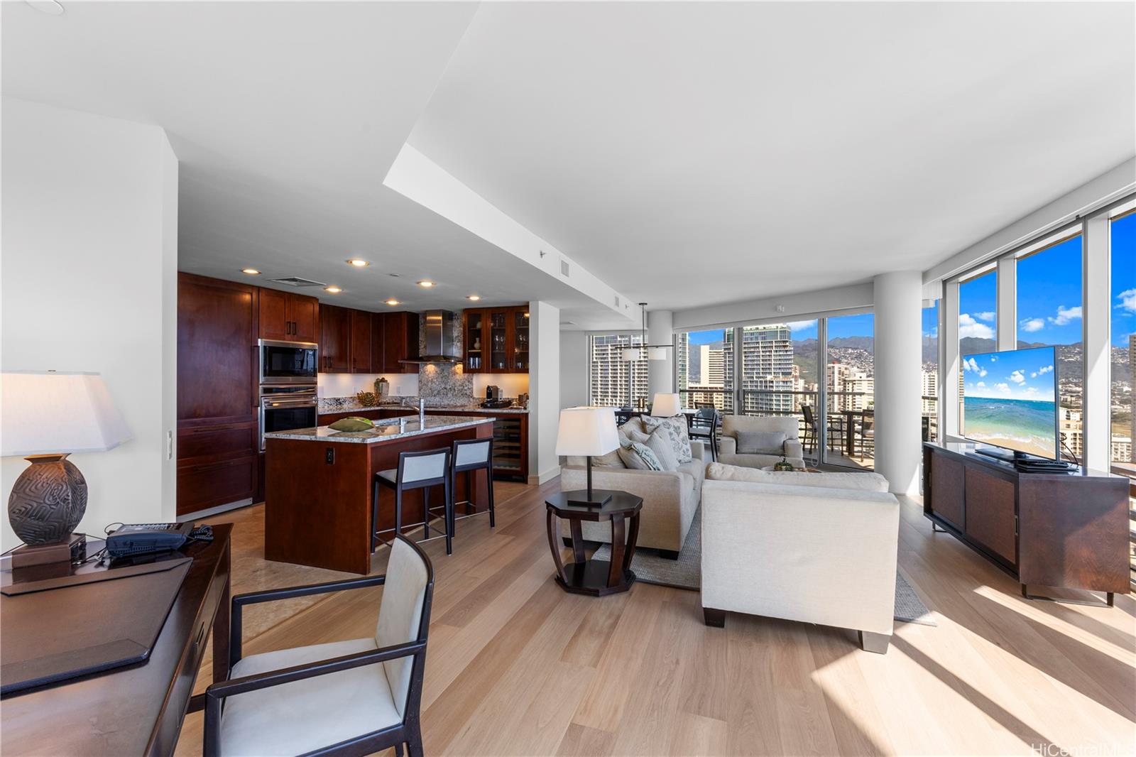 Just minutes from Waikiki Beach, this elegantly upgraded corner unit offers true resort-style living. Enjoy convenient access to a wide variety of nearby restaurants, as well as on-site dining and room-service options available through the hotel.