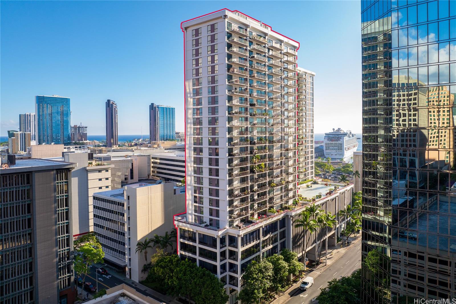 Welcome to Unit 14C at Harbor Square, a tastefully designed and truly turn-key one-bedroom residence in the heart of downtown Honolulu. This thoughtfully planned home offers 469 square feet of interior living space, complemented by a generous 121 sq.ft. lanai-perfect for enjoying city views, fresh air, and indoor-outdoor living. The interior is well-appointed with a clean, modern aesthetic that feels efficient yet comfortable, ideal for an urban lifestyle or low-maintenance island retreat. The all-inclusive maintenance fee adds exceptional value, covering utilities for simplified, predicable living. Located just moments from Honolulu's financial district, waterfront, dining, and cultural destinations, Harbor Square offers the convenience of downtown living with the comfort of a secure, established building. Whether as a primary residence, pied-a-terre, or investment opportunity, Unit 14C delivers style, functionality, and location in one smart package. Listing by: Hawaii Modern Realty (808) 792-3910