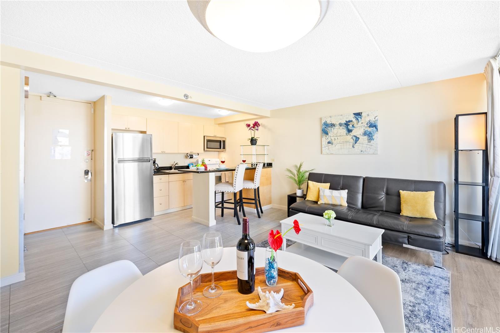 string(1144) "SELLER TO PAY OFF THE $10,000 SPECIAL ASSESSMENT AT CLOSING! Fully furnished 1-bedroom, 1-bath condo in the heart of Waikiki with an unassigned covered parking stall. Enjoy panoramic views of the city, Diamond Head, and the ocean from your private lanai. This move-in-ready unit has been recently updated with new flooring, upgraded furnishings, and a brand-new AC fan coil system installed by the AOAO in October 2024. Features include granite countertops, essential appliances, and a fully equipped kitchen. Building amenities include a swimming pool, BBQ area, recreation deck, community laundry, 24-hour security, and an on-site minimart.