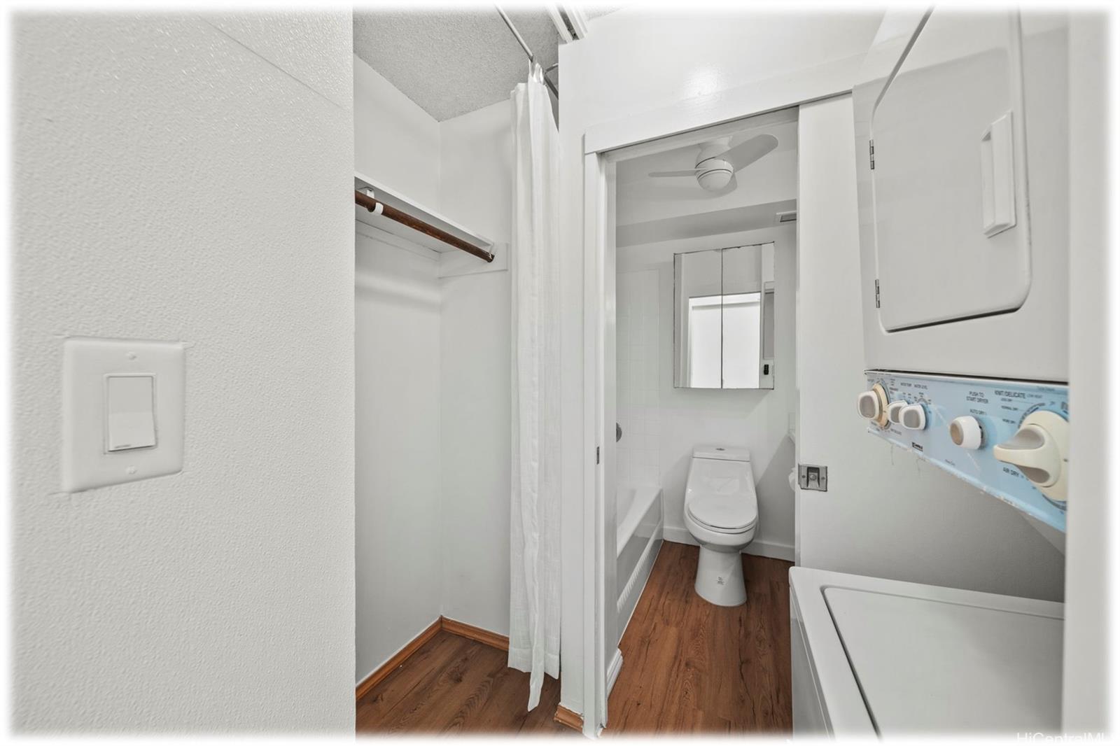 string(1183) "Studio Unit with Golf Course and Cityscape Views! Conveniently located in Waikiki’s coveted and secure Fairway Villa building, this 364sqft residence offers an upscale lifestyle with access to desirable amenities, such as a rooftop pool, firepit, BBQ, covered lounge areas, and a sauna. Situated on a high-floor, the sundrenched unit immediately charms with wood flooring, kitchen with stainless-steel appliances, in-unit washer and dryer, and a large living space with sliding glass doors to the private balcony. The balcony comes with motorized storm shutters and remote control. Perfect for relaxation, the outdoor space boasts scenic views of the ocean, the golf course, and the glittering cityscape. Sized for versatility, the unit may be creatively arranged to accommodate both weekend entertaining and daily living. Set-up a cute bistro table for dining and create a media area with a wall storage unit. Other features include covered, assigned parking (secured), near shopping, restaurants, and much more! Call for a private tour! $109 for Special Assessment until the end of 2043 is for the completed waste waterline replacement project. $62 is for the cable and internet."