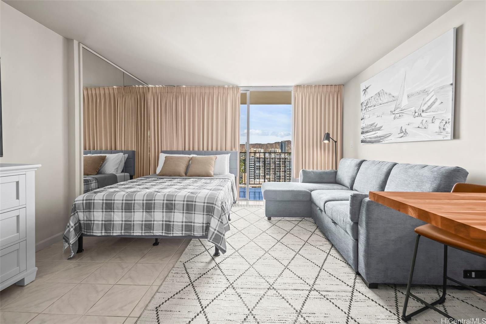 Welcome to your serene Waikiki retreat on the 25th floor, ideally positioned on the cooler Diamond Head side of the building. Wake up to stunning sunrises over the Ko'olau Mountains and take in panoramic views that include the ocean, golf course, and city skyline—all from your private lanai and living space. Just two blocks from world-famous Waikiki Beach and moments away from the International Marketplace, shops, dining, and entertainment. The building offers excellent amenities, including a rooftop BBQ area, reading lounge, and swimming pool. This studio is perfect for both personal enjoyment and investment opportunities. Listing by: Locations LLC (808) 927-0148