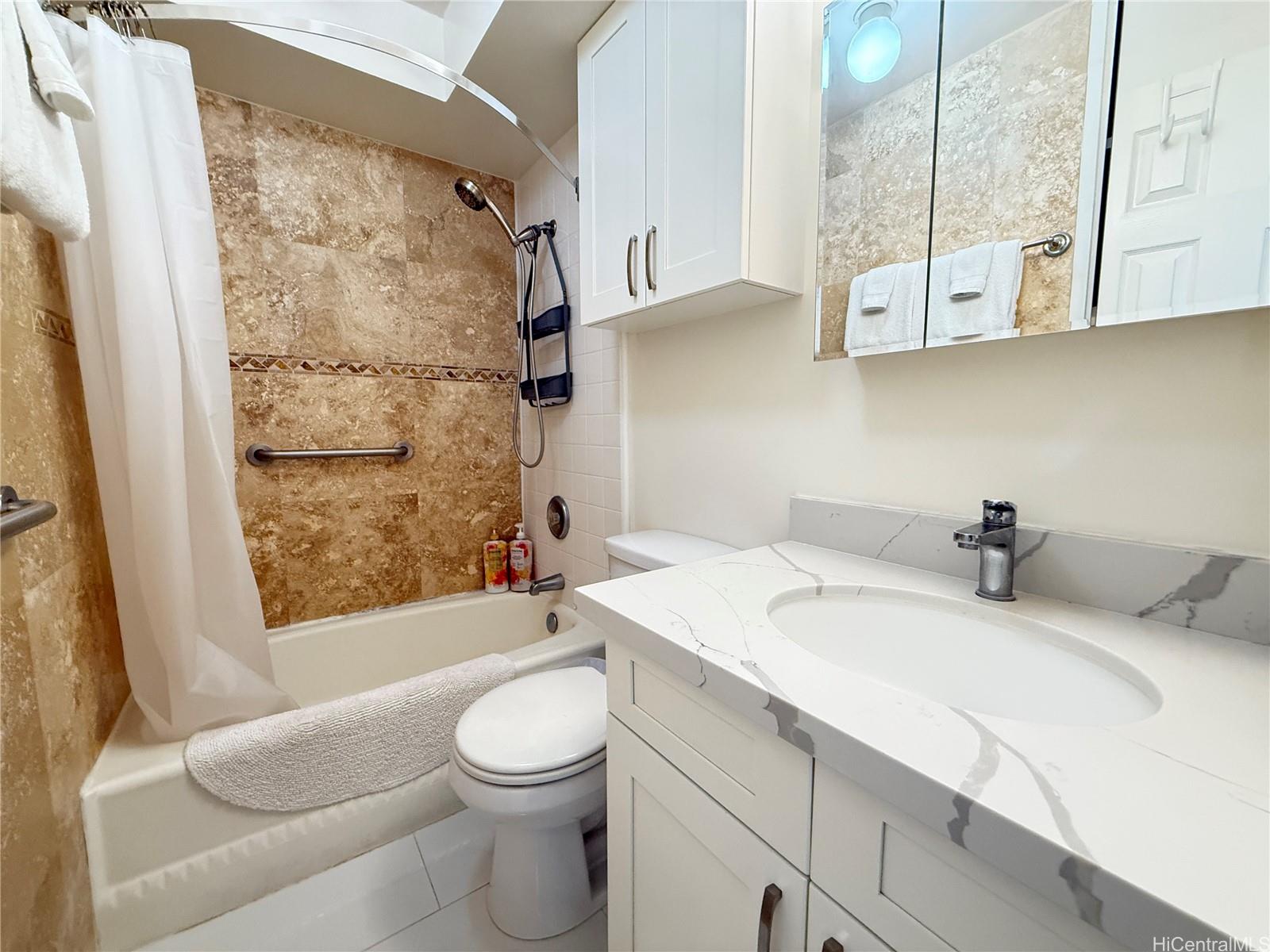 Just one block from Target, International Market Place, and world-famous Waikiki Beach, you’ll be right in the center of it all. This move-in ready unit comes fully furnished and includes a newer refrigerator, newer washer and dryer, and a TV. The kitchen features sleek quartz countertops, while both bathrooms showcase elegant marble vanities. Luxury vinyl flooring flows throughout the home, and two sliding doors open to the lanai, creating seamless indoor-outdoor living with plenty of space to relax.