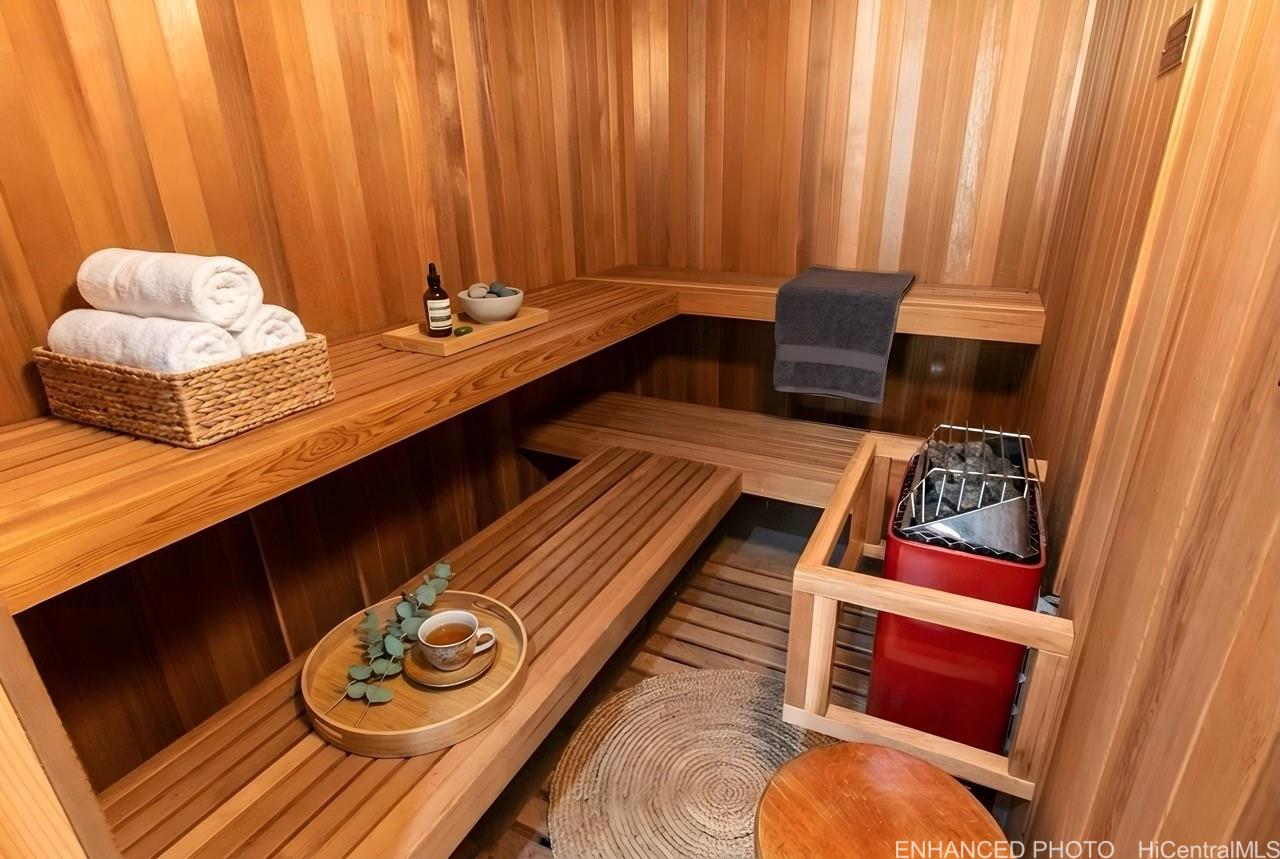 [0] => Located in the prestigious Portlock neighborhood, this gated residence offers privacy and close proximity to Maunalua Bay, including ¼ shared ownership in a beach access walkway just steps from the property and convenience of nearby Hawaii Kai amenities, including Costco, grocery stores, dining, and shopping just minutes away. Designed by award-winning architect James McPeak, the home features soaring ceilings, expansive windows, Italian porcelain flooring, and generous interior living spaces. The layout includes five bedrooms with two primary suites, each with a private lanai, a bonus room, along with spa-inspired bathrooms and an in-home sauna. Set on a 13,000+ sq ft lot, the property is complemented by a 50-foot saltwater pool and spa, covered lanai, and outdoor bar area. Recent improvements include a new custom roof (2021), updated windows (2022, excluding select doors), and a solar system subject to a power purchase agreement.