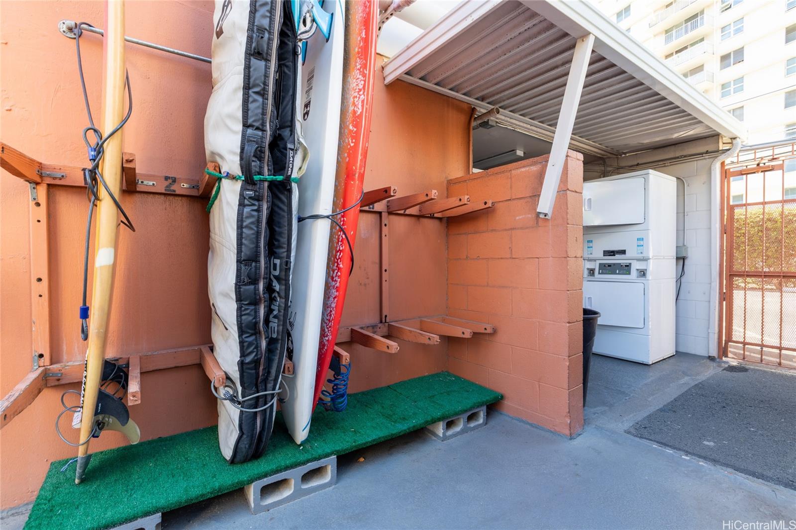 features secure entry, an on-site resident manager, surfboard racks, a storage locker, and a refreshing pool with a lanai to