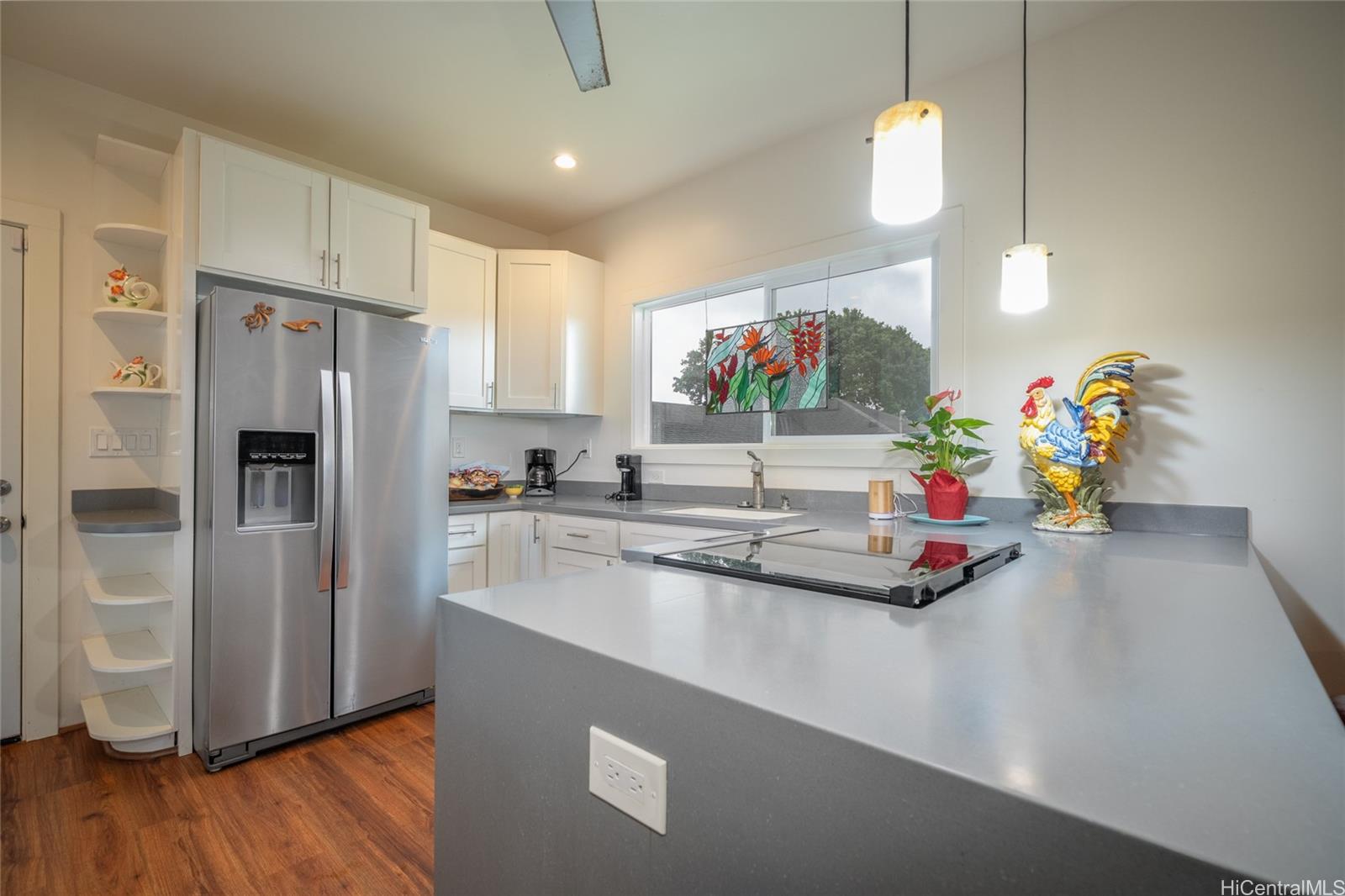 3 BR, 2 Bath Charming Home with 2 Car Carport on former Lychee orchard land. Rebuilt in 2017. Modern, open kitchen with Corian counter tops. Inviting front Lanai and high ceilings in home. New stove. Washer & Dryer included. Fenced yard & ample storage space. Close to Wahiawa town and Ka'ala Neighborhood Park. Listing by: Keller Williams Honolulu (808) 439-8250