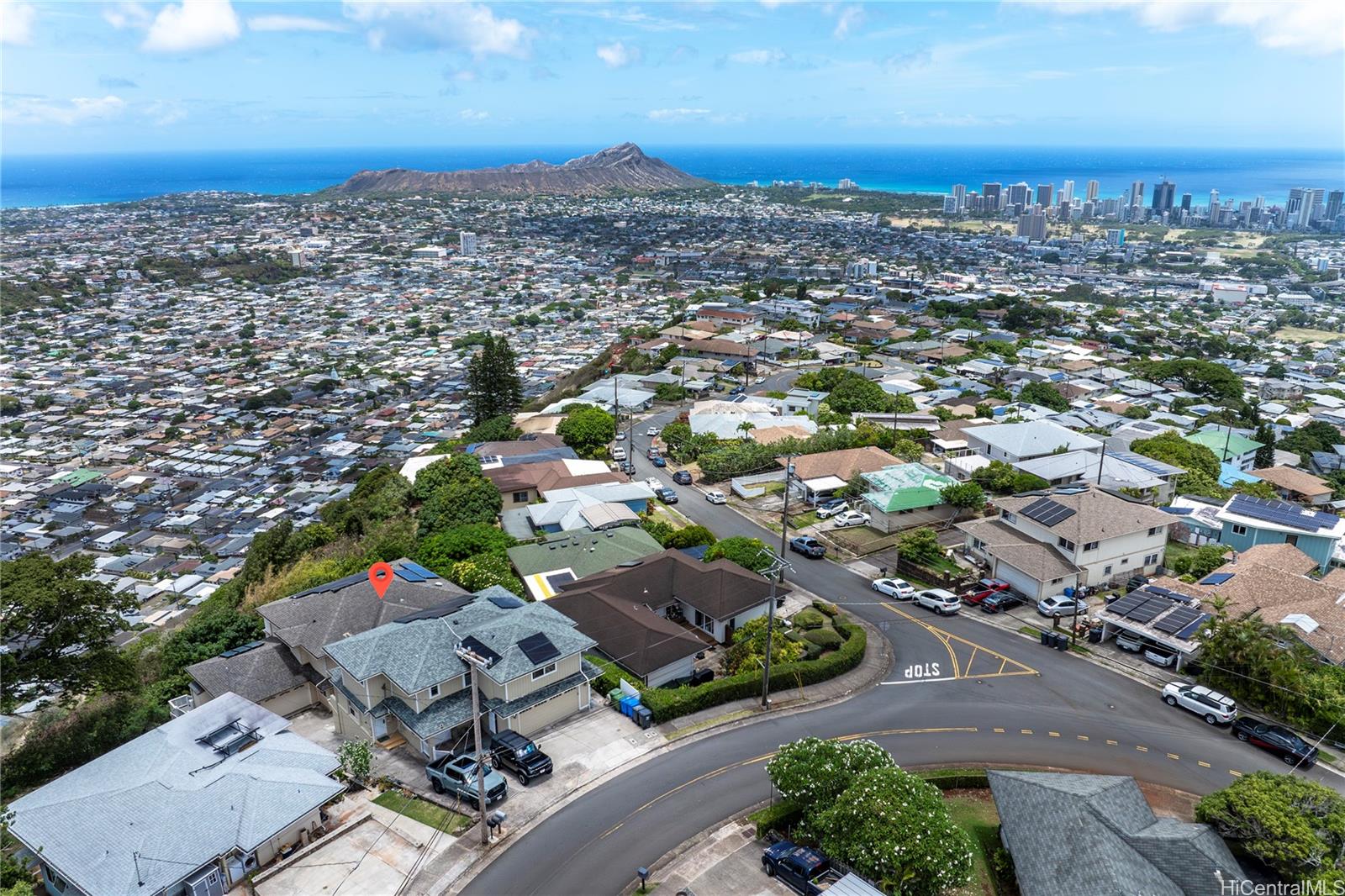 Nestled on coveted St. Louis Drive, this expansive 5-bedroom home perfectly blends tranquility with modern comfort and showcases stunning views of lush valley greenery, iconic Diamond Head, and the sparkling ocean beyond. 24 owned photovoltaic panels, solar hot water, and split air conditioning keep the home energy-efficient and cool all year. The flexible layout offers an Ohana unit (bedroom/bath/kitchenette) on the main level with its own private garden, screened-in porch deck, and separate entrance — ideal for guests, extended family, or rental income potential. Upstairs, the primary suite is a true retreat with a separate office/den, spacious closet, and direct access to a large covered lanai for relaxing or entertaining while taking in the panoramic east /south views. A cozy bonus living area off the stairway landing is perfect for a reading nook or home library. The finished basement rec room with wet bar and full bath offers even more possibilities — from a game room to a private guest suite — and includes its own separate entrance for added privacy and flexibility. A garden with exotic fruit trees, and a 2-car garage, and carport complete this quiet Honolulu oasis. Listing by: Realty Brokerage LLC (808) 358-2003