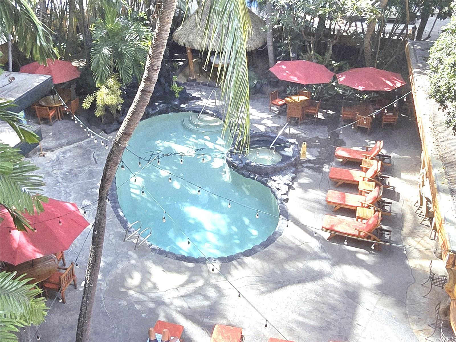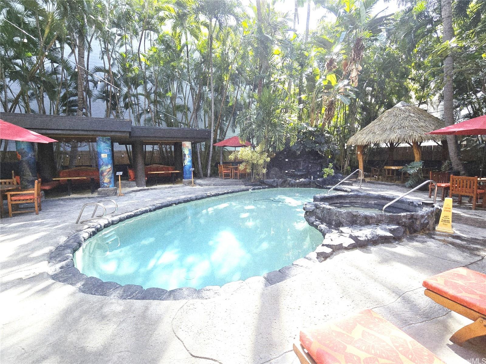 kitchen amenities. The pool area has a tropical taste with a jacuzzi and bar/restaurant right beside the pool. Enjoy the income-generating unit for investment purposes. Listing by: Coldwell Banker Realty (808) 676-7200
