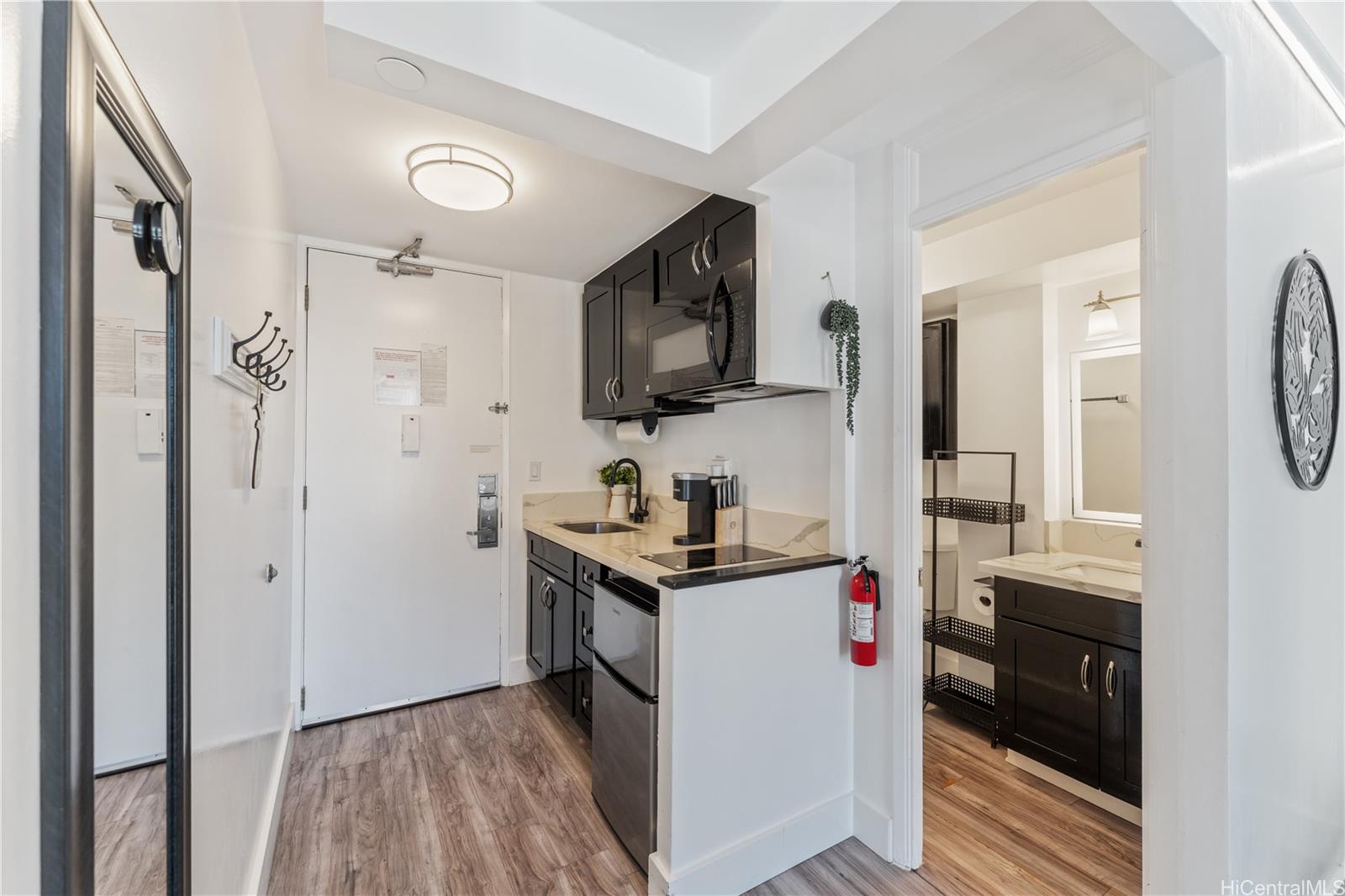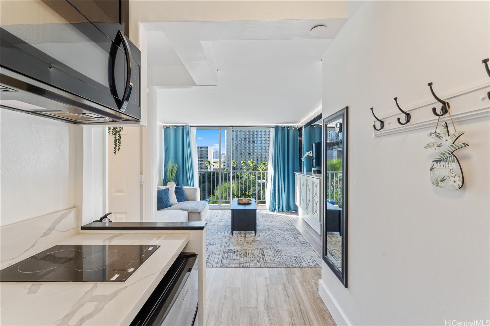 Experience island living at Pacific Monarch, perfectly situated in the vibrant heart of Waikiki. This beautifully updated studio with a convenient kitchenette offers both style and functionality, making it an excellent opportunity for investors looking to begin or add to their portfolio or those seeking their own Waikiki escape. Currently operating successfully as a short-term rental, the unit features modern upgrades and a smart, efficient design that maximizes comfort and functionality. Residents and guests enjoy top-notch amenities, including a 24-hour front desk, rooftop community lounge, sauna, and an impressive rooftop pool deck showcasing sweeping ocean and city views. The property is in close proximity to Waikiki Beach, the International Market Place, a wide array of shopping, dining and entertainment options! Whether you’re looking for a strong income-producing property or your personal retreat in paradise, this studio delivers. Don't wait, schedule your private showing today and see what Pacific Monarch living can offer you! Listing by: Five Star Realty, Inc. (808) 382-6871