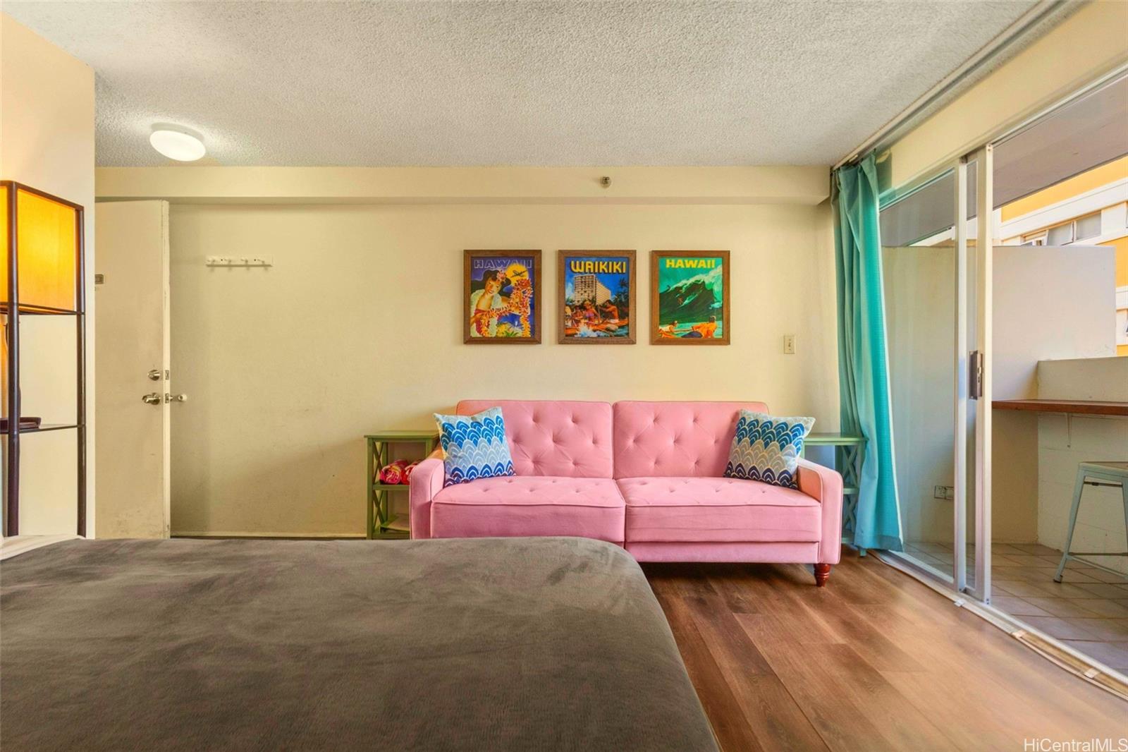 Iconic Waikiki getaway in the sought-after 05 stack! This Fee Simple legal short-term rental studio is known for its famous "Pink Couch"—featured in Forbes, Business Insider, and other top travel/Airbnb “best of” roundups—and it delivers the kind of stay guests remember. Step onto your lanai and enjoy ocean views and island breezes, all just minutes to Waikiki Beach, world-class dining, and shopping. Sold fully furnished, with strong rental history and solid income potential, this is a true turnkey opportunity. Building major improvements including spalling/painting (2020–2021) and a lobby renovation (2022–2024) with new automatic entry doors and refreshed artwork. Operations were also updated with a redesigned security area, FOB access, registration kiosk, and key vault system. Enjoy an on-site Resident Manager, security, surfboard storage, and bike racks. For added guest convenience, optional paid luggage storage is available for early arrivals/late departures so guests can explore hands-free. Maintenance fee includes electric & water (not sub metered), hot water, cable, internet, on-site management & security. Monthly special assessment through Dec 2027, prorated at closing. Listing by: Redfin Corporation (808) 201-2821