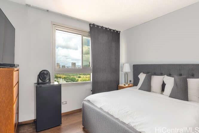 Price Improvement! Enjoy breathtaking views from this corner end unit, overlooking the Ala Wai Canal, Ala Wai Golf Course, and the majestic Ko'olau mountains. This beautifully remodeled 2-bedroom, 1.5-bath condo, 1 covered parking, separate storage unit on PH level, features elegant tile floors, recently painted, washer/ventless dryer combo. New floors,. New chiller, New Elevator. Offered partially furnished, this home is move-in ready - perfect for those seeking comfort, style and scenic vistas.