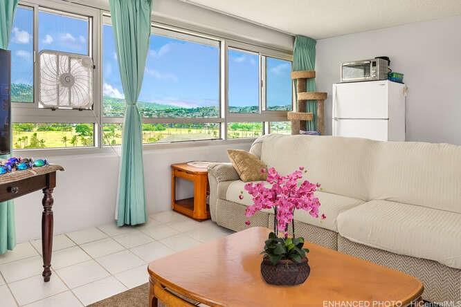 [0] => Price Improvement! Enjoy breathtaking views from this corner end unit, overlooking the Ala Wai Canal, Ala Wai Golf Course, and the majestic Ko'olau mountains. This beautifully remodeled 2-bedroom, 1.5-bath condo, 1 covered parking, separate storage unit on PH level, features elegant tile floors, recently painted, washer/ventless dryer combo. New floors,. New chiller, New Elevator. Offered partially furnished, this home is move-in ready - perfect for those seeking comfort, style and scenic vistas.