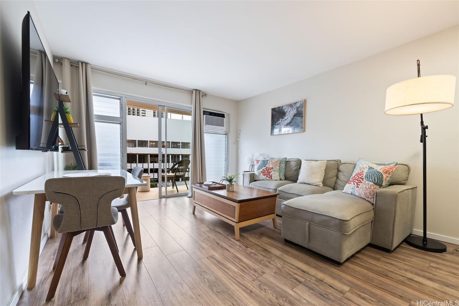 Rarely available and perfectly positioned! Discover this turnkey fully furnished 2-bedroom, 2-bathroom residence PLUS one parking stall at 2465 Kuhio Avenue. Located in the coveted Resort Zone, this property offers the ultimate flexibility with legal short-term rentals allowed, making it a premier choice for investors or those seeking a high-performing vacation home. The unique "lock-off" style layout features two separate entry doors, providing a versatile alternative use for maximizing rental income or hosting extended family. The unit has been nicely upgraded and comes fully furnished and thoughtfully equipped with every detail for a seamless Airbnb setup—from linens to kitchen essentials including a bottled wine cooler, it is truly move-in ready. Enjoy a full-size, fully equipped kitchen and the luxury of two private lanais offering a refreshing breeze and a glimpse of the ocean. Includes one covered parking stall—a rare gem in Waikiki. A short stroll to Waikiki Beach, the International Market Place, Target, fine dining and world class shopping along Kuhio and Kalakaua Avenues. Don’t miss this rare opportunity to own a piece of paradise designed for high income potential! Listing by: Compass (808) 398-0443