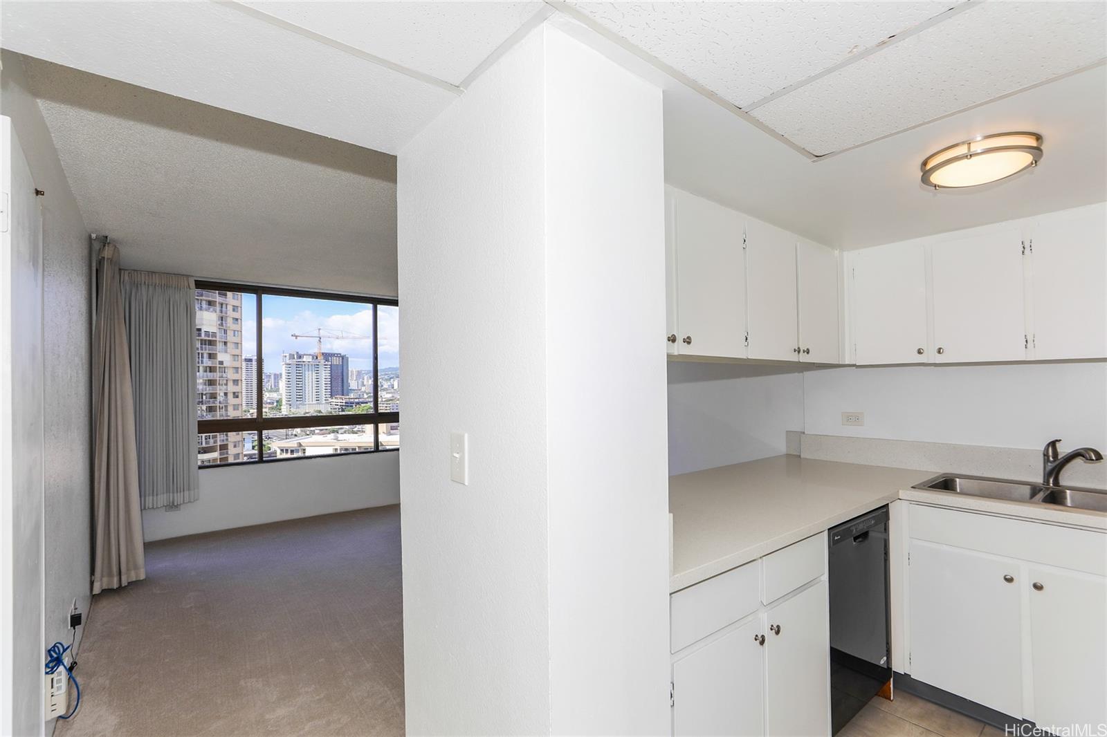 Enjoy the perfect blend of urban energy and vacation-inspired relaxation in this well-maintained 1BR/1BA home in Iolani Court Plaza. Close to Ala Moana Center and with easy freeway access, this home has it all. Large windows let in plenty of light and reveal expansive city views. For added convenience this home features in-unit laundry and a recently reglazed tub and shower. Relax by the pool after practicing at the building's putting green or stop by the building's mini-market which keeps the daily essentials within easy reach. Don't miss your opportunity to enjoy all the amenities and convenience that this home provides! Listing by: Keller Williams Honolulu (808) 596-2888