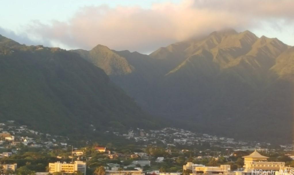 Rare opportunity to own a coveted high-floor 1BR/1BA residence that is well maintained and offers an abundance of natural light, as well as breathtaking unobstructed city and mountain vistas. The unit boasts an upgraded kitchen (new microwave and dishwasher), central air conditioning, high-speed fiber-optic internet, stacked washer and dryer, and a private lanai— perfect spot for enjoying your morning beverage, or to catch beautiful sunsets and enjoy watching the city lights in the evening. Ideally situated near the University of Hawai‘i, freeway access, premier shopping destinations, world-class beaches, Waikiki, and Ala Moana, the building’s prime location offers the ultimate in convenience, with a mini mart on the ground floor, ample guest parking, and secure garage entry to your assigned covered stall. The building also offers resort-style amenities: tennis courts, a pickle ball court, putting green, sparkling swimming pool, soothing whirlpool, sauna, and BBQ areas—all thoughtfully designed for your leisure and recreation. Building-wide waste pipe replacement is currently underway, with this unit’s upgrade already completed for your peace of mind. Listing by: Halepuna Real Estate Hawaii (808) 354-5772