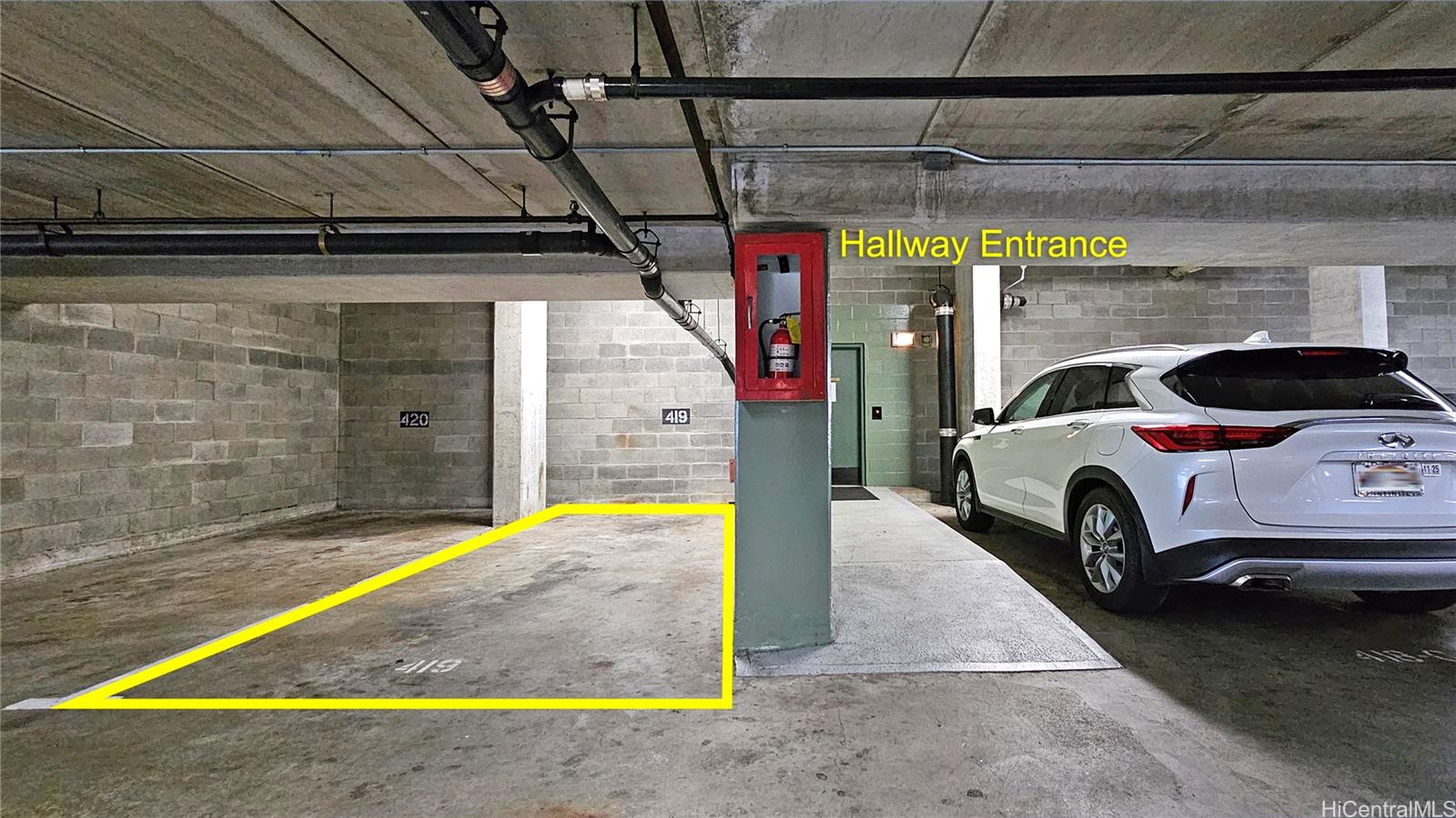 Brand new carpet installed 4/14/2025.Largest 1 bedroom in Iolani Court Plaza. Extra spacious, 1 of only 2 units that are 578 sq ft of interior living space. Brand new paint. Renovated kitchen and bath. Desirable covered secured parking stall on same floor as unit, just exit door on 4th floor hallway. Resort like amenities and central A/C, 25 guest stalls, 2 tennis courts, pickle ball court, pool, jacuzzi, sauna, putting green and car wash area. Fee Simple Listing by: Realty Edge Inc (808) 227-0866