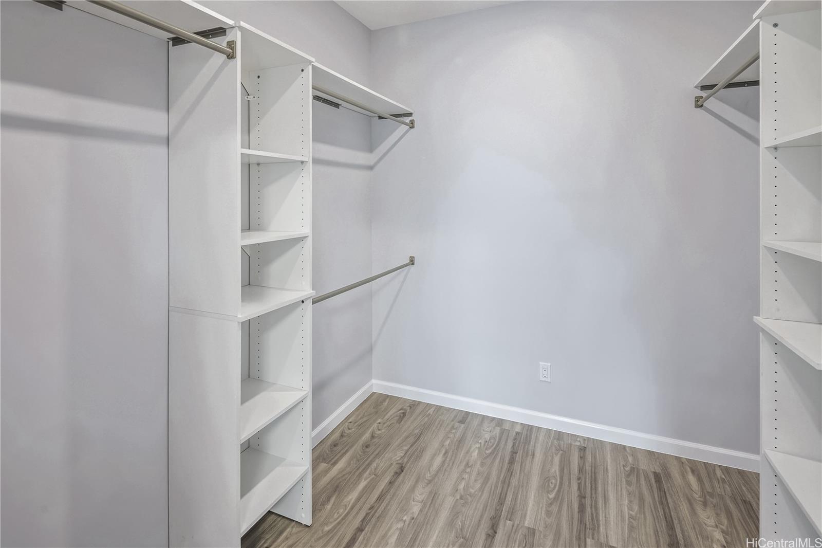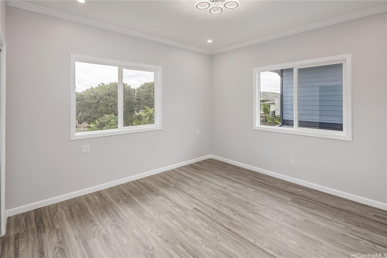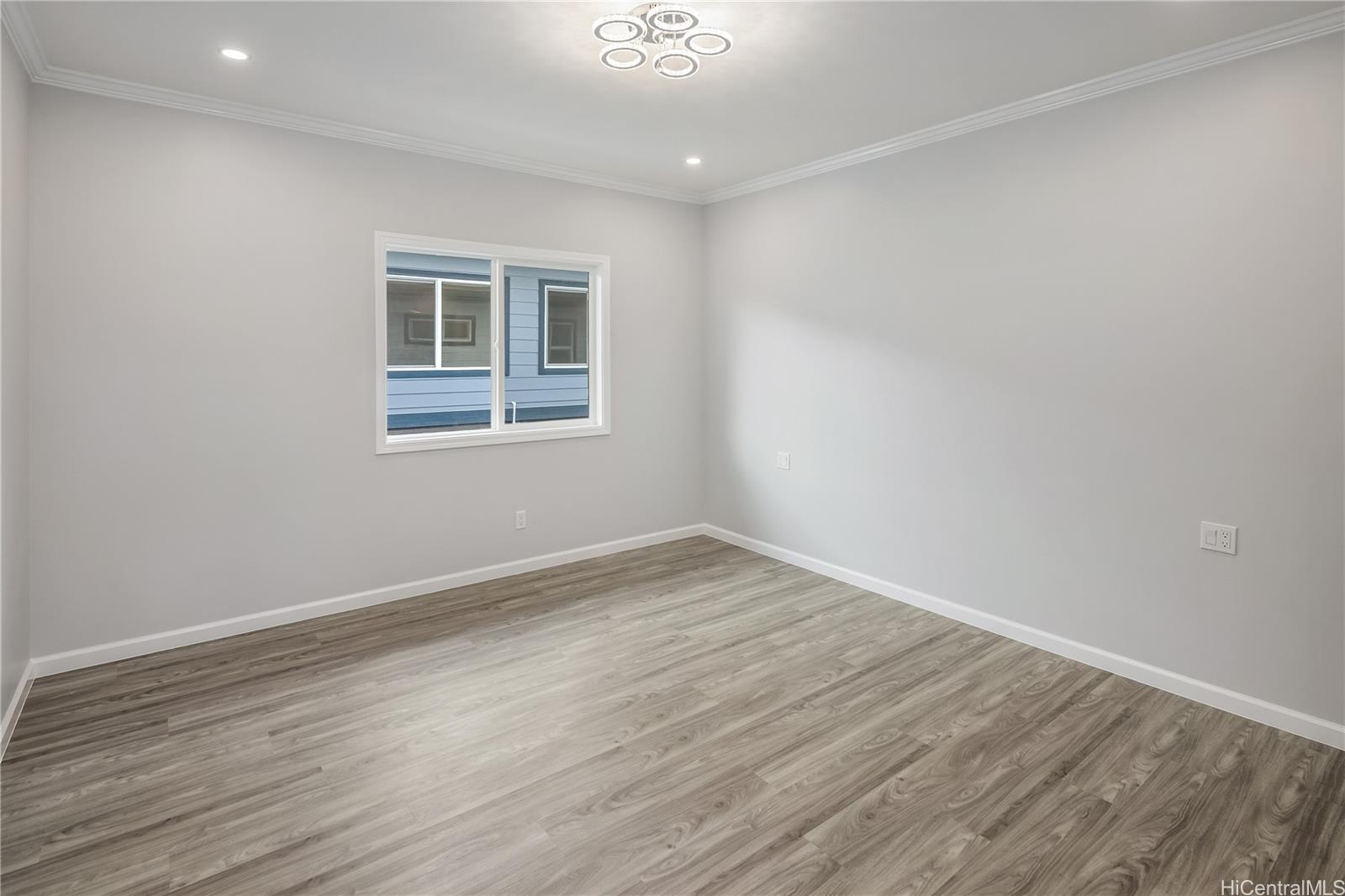 Upstairs, the second floor features 3 bedrooms, 2 bathrooms, and a large open-concept kitchen with premium finishes-perfect for cooking, entertaining, and everyday living. vinyl plank flooring enhances the contemporary appeal. Luxury muti-split A/C units throughout keep the home cool year-round. The upstairs Ilving room and primary bedroom are highlighted by a fascinating suspended celling with custom lighting, adding a sophisticated architectural touch. Enjoy the peace and comfort of this Wahlawa neighborhood while being Just minutes from schools, dining, shops, and the scenic Wahlawa Freshwater State Recreation Area, Schofleld Barracks and Wheeler Army Airfield!