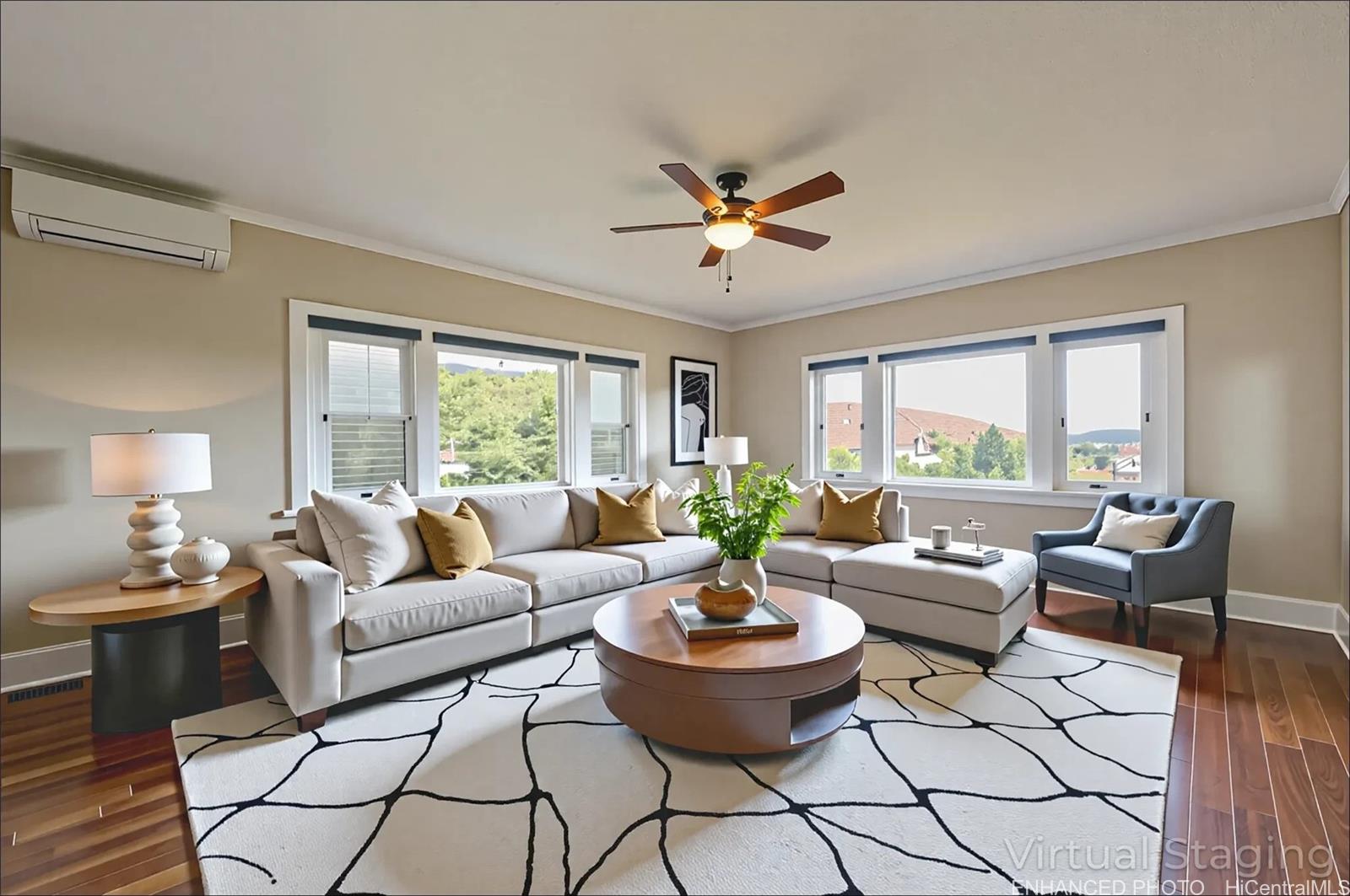 With 8 bedrooms, 6 full and 2 half baths the home invites refined living. The expansive lanai is ideal for year-round enjoyment and sunset entertaining. Set on an 18,340 sqft lot, it includes studio and private storage. Rich Ohia wood floors on the main living & dining area, and 44 photovoltaic panels celebrate Hawaiian craftsmanship and sustainability. Minutes from downtown and Waikiki, this estate offers adaptable spaces for diverse lifestyles or investment.