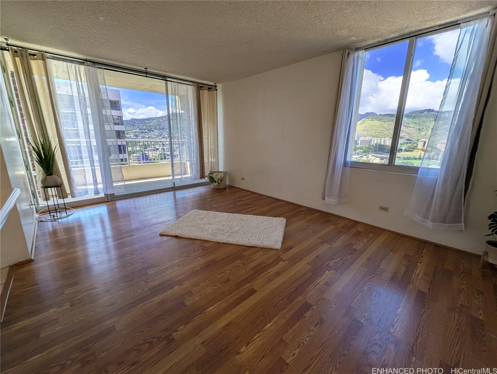 Welcome to Hale Kulanui, conveniently located in the heart of Moiliili! This well-maintained 1-bedroom, 1-bath, corner-end unit features a desirable blend of laminate & ceramic tile flooring, offering both style and easy upkeep. The bathroom has been recently upgraded w/a beautifully renovated tile shower and surround, giving it a fresh, modern feel. Step outside to your spacious, covered lanai & enjoy sweeping views that stretch from the lush Ko'olau mountains to peekaboo views of the sparkling Pacific Ocean — perfect for morning coffee or evening sunsets. This unit comes w/one covered parking stall on the ground floor, and a private storage locker. This pet-friendly building offers a 24 hr exercise and weight room, swimming pool & deck w/views of Diamond Head, a community library and rec area, on-site resident manager, secured entry, and more! Just minutes from UH Manoa, Waikiki, Kaimuki, shops, dining, & bus lines — it's urban living that combines comfort and convenience. Perfect for first-time homebuyers, investors, or those who are just looking to move into town, you don’t want to miss this opportunity! Hale Kulanui is 100% insured for hurricane replacement coverage! Listing by: Island, REALTORS (808) 342-2650