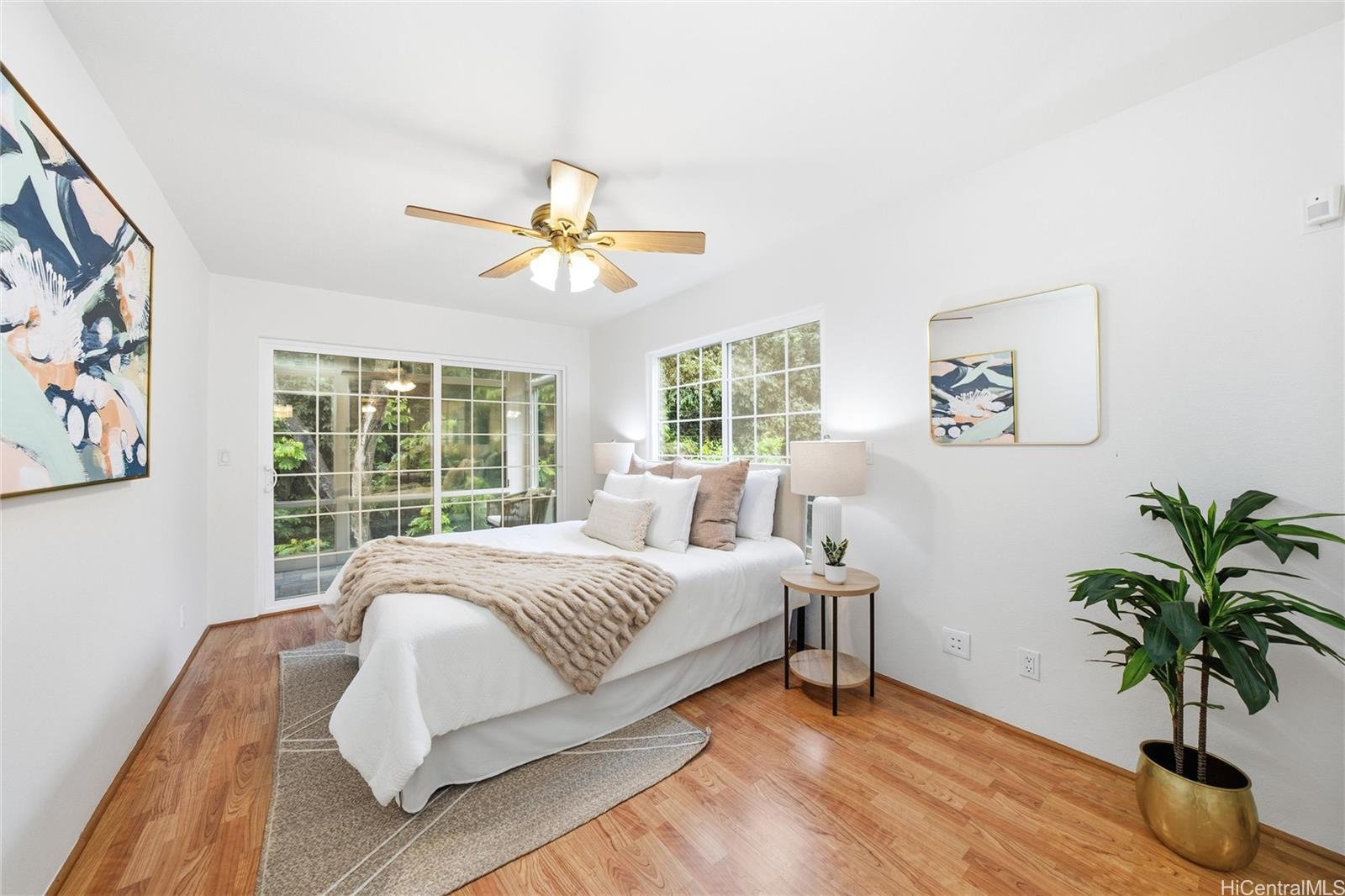 Experience serene island living in this rare and spacious 4-bedroom, 3-bathroom streamside home in the private community of Manoa Hillside Estates. Located near the community's entrance and across from visitor parking stalls, this inviting residence features a newer standing-seam metal roof, 37 owned PV panels, and professionally landscaped grounds that front a tranquil stream. Enjoy flexible indoor-outdoor living with fully enclosed balconies ideal for sun rooms, indoor gardens, and or reading nooks. Outdoor spaces are enhanced with a spacious Trex deck with aluminum patio cover and an upgraded concrete driveway. This home is conveniently located minutes from Manoa Marketplace, UH Manoa, Mid-Pacific Institute, parks, and popular valley trails. A rare opportunity to own a beautifully maintained retreat in a quiet and highly desirable neighborhood. Listing by: Refined Real Estate Hawaii LLC (808) 256-7011