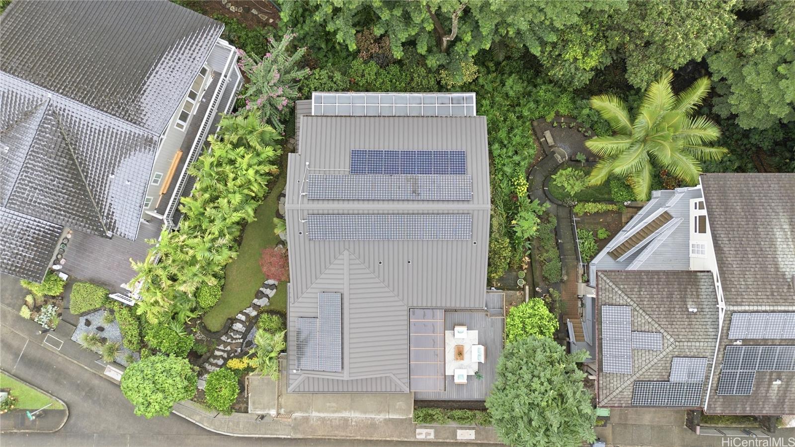 [0] => Experience serene island living in this rare and spacious 4-bedroom, 3-bathroom streamside home in the private community of Manoa Hillside Estates. Located near the community's entrance and across from visitor parking stalls, this inviting residence features a newer standing-seam metal roof, 37 owned PV panels, and professionally landscaped grounds that front a tranquil stream. Enjoy flexible indoor-outdoor living with fully enclosed balconies ideal for sun rooms, indoor gardens, and or reading nooks. Outdoor spaces are enhanced with a spacious Trex deck with aluminum patio cover and an upgraded concrete driveway. This home is conveniently located minutes from Manoa Marketplace, UH Manoa, Mid-Pacific Institute, parks, and popular valley trails. A rare opportunity to own a beautifully maintained retreat in a quiet and highly desirable neighborhood.