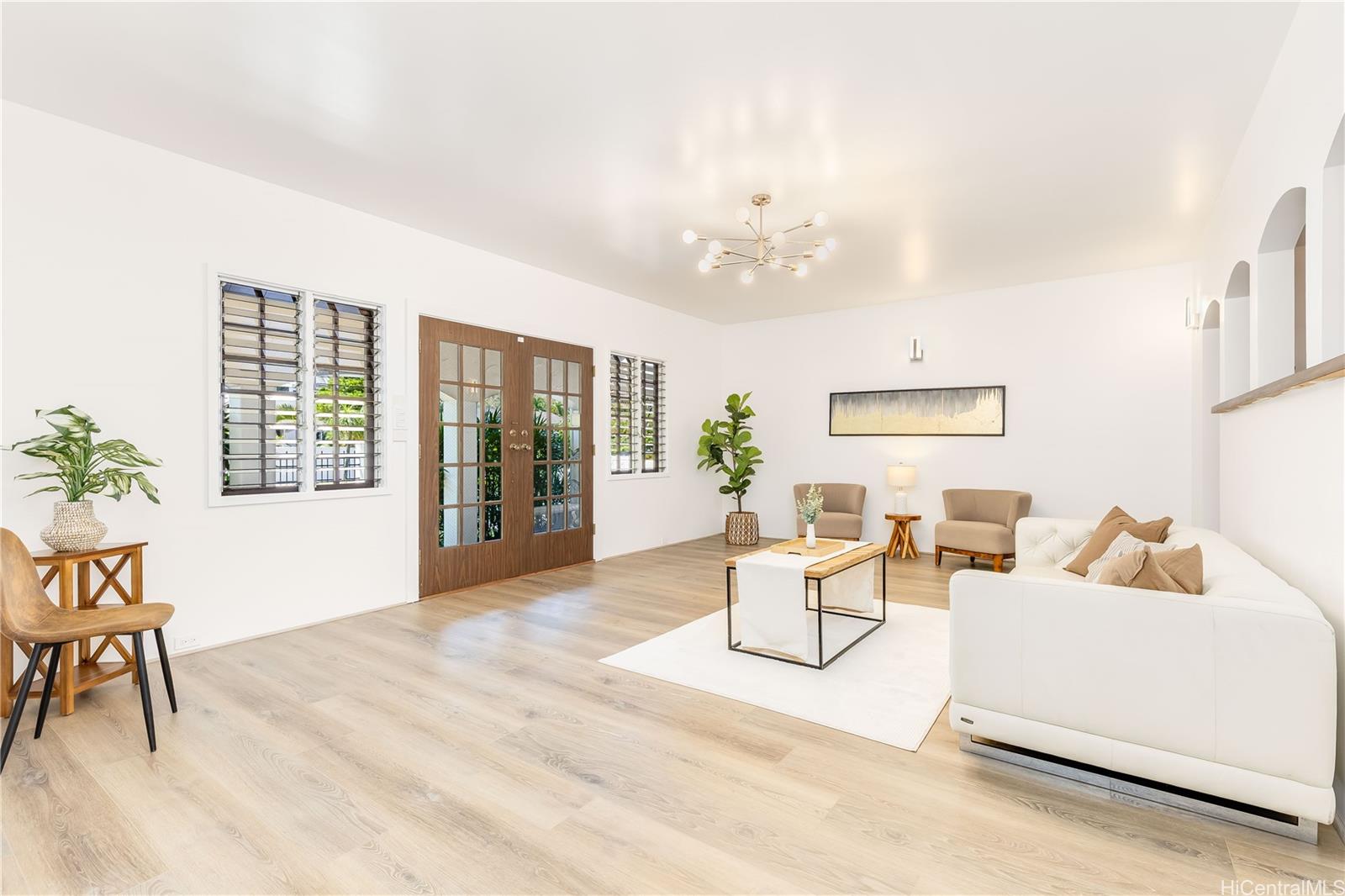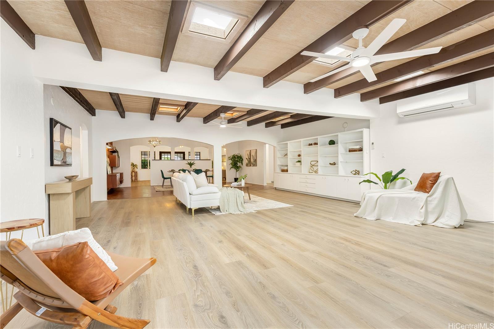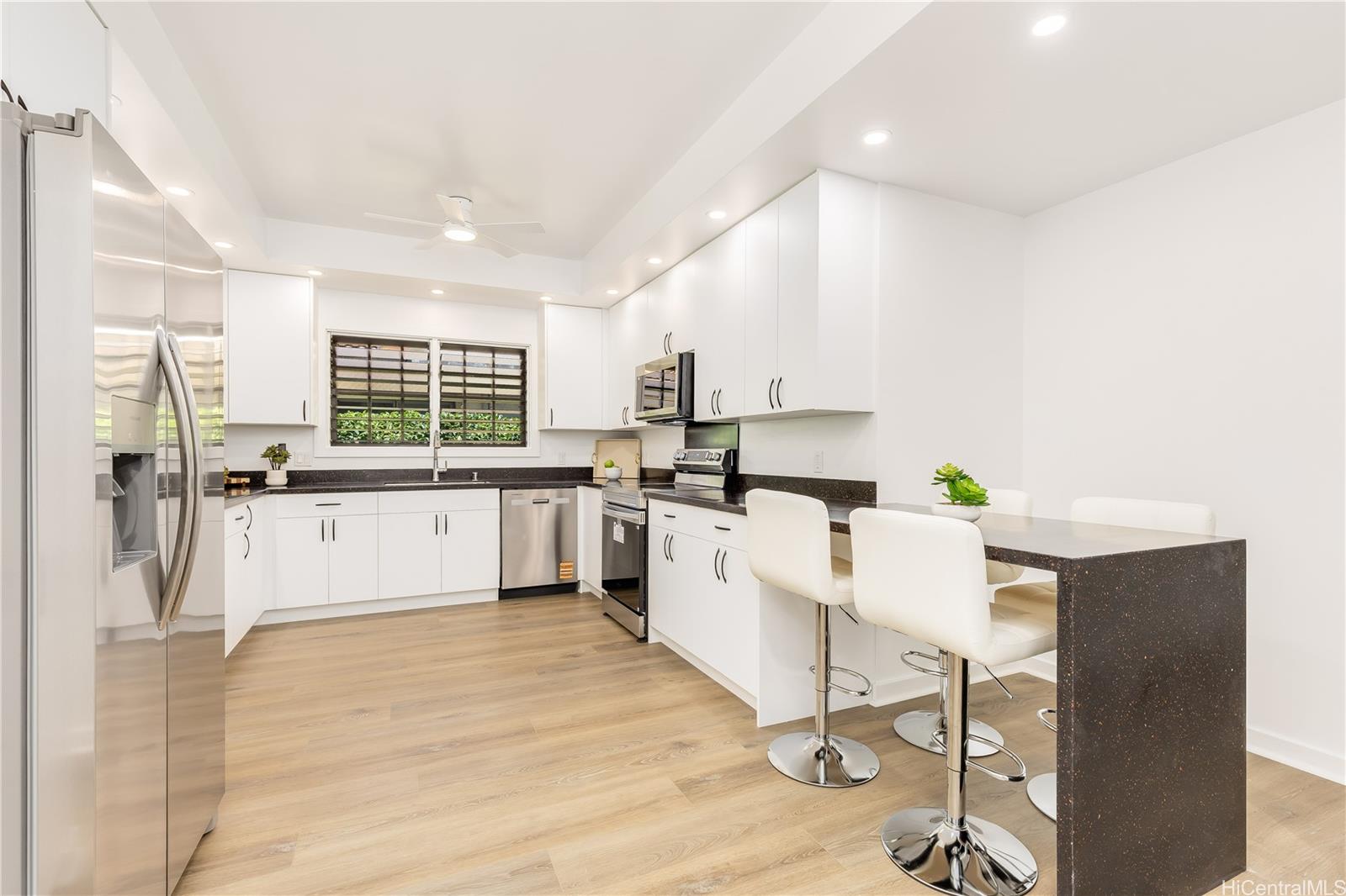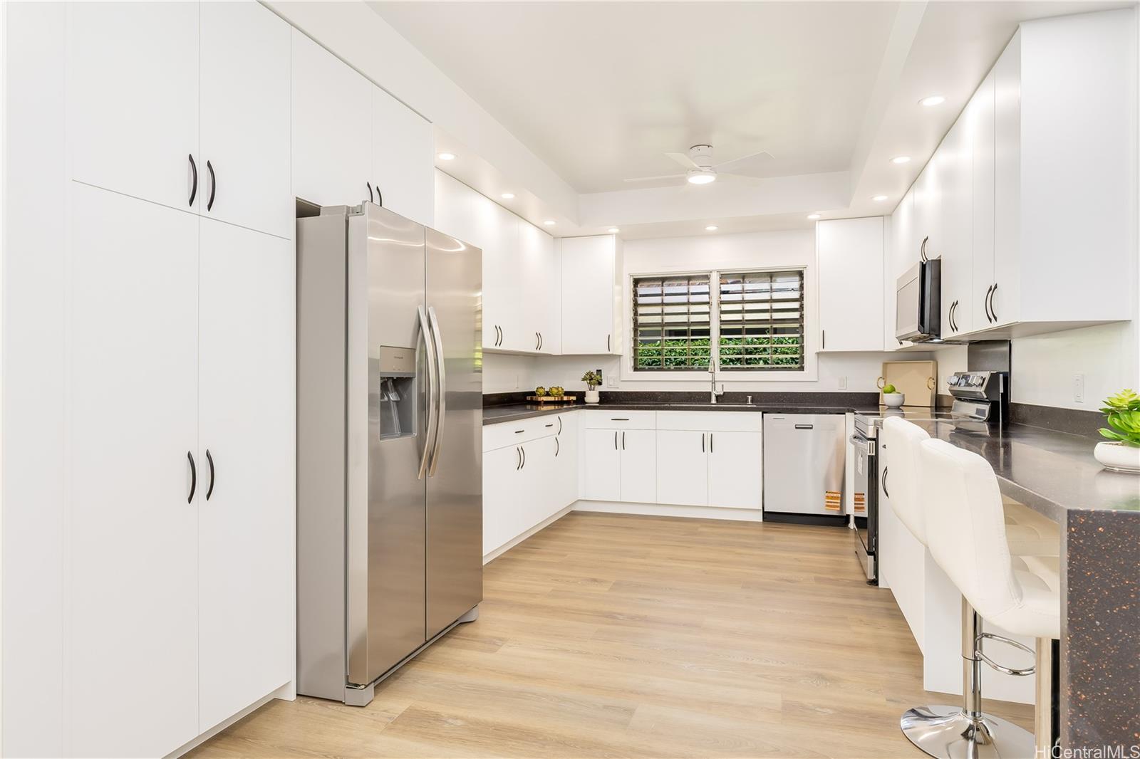 New Price! Now offered at $2,395,000 FS. This beautifully renovated 5-bedroom, 3-bath home offers nearly 3,100 sq. ft. of single-level living on a level 7,630 sq. ft. lot - a rare find in Manoa. The open layout features a spacious living room that flows into a large family area, ideal for gatherings or multigenerational living. Updated kitchen and baths, new flooring, lighting and fresh interior paint. Stay cool with split and window AC units plus ceiling fans. Energy-efficient with 23 owned net-metered PV panels and a new solar water heater. Located near UH, Punahou and Mid Pacific, parks, shopping, and dining, this move-in-ready home blends modern comfort with classic Manoa charm all in a prime location! Interior square footage does not match tax records. One or more photos may have been enhanced. Listing by: Marcus Realty (808) 839-7446