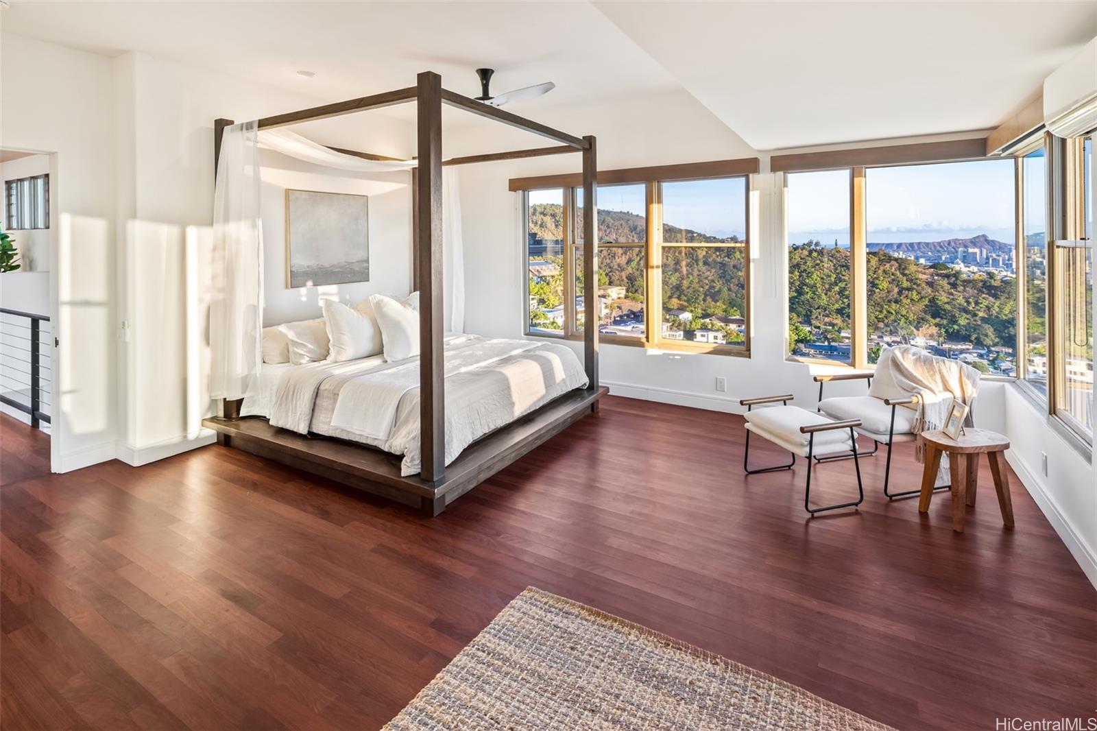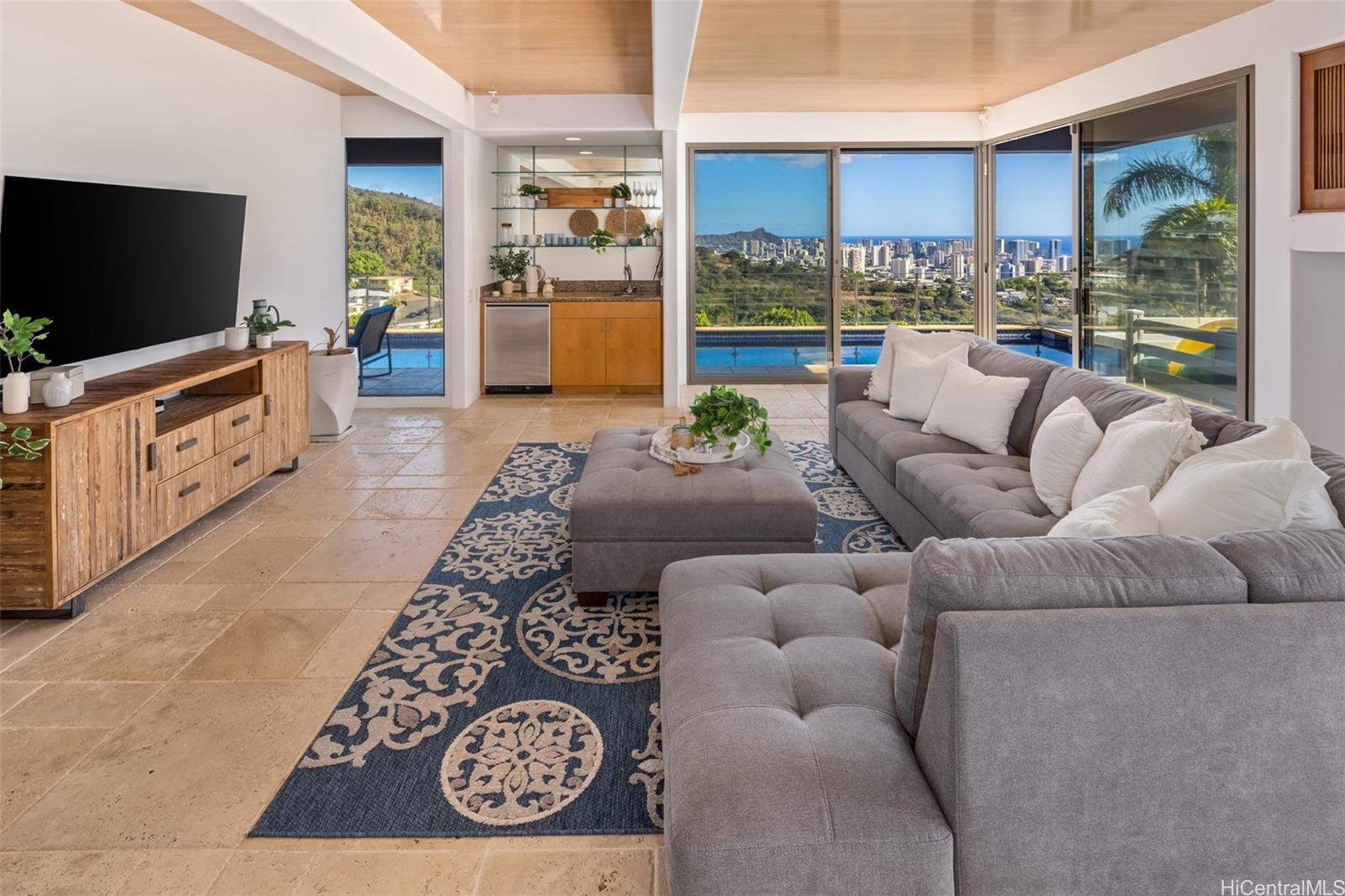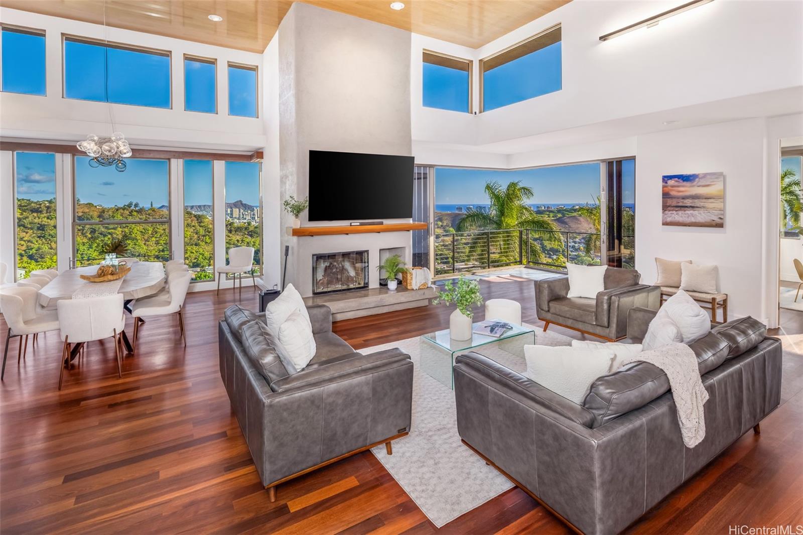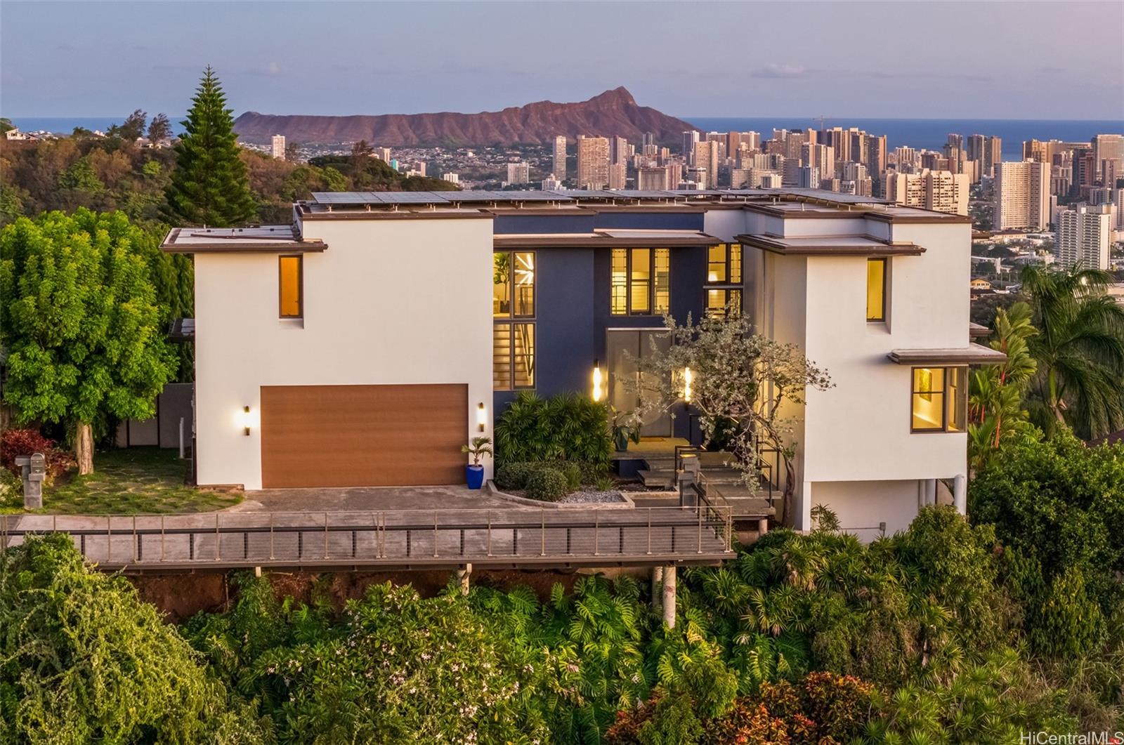 Contemporary Elegance! Welcome to this extraordinarily designed custom home by architect, Jim Schmit. The floor plan is masterfully designed toward the focal points of spectacular views from Diamond Head to Pearl Harbor to the Ko'olau Mountains. Monumental ten feet tall Bonded Bronze entry doors greet you and lead to the grand two-story living room. Stepping into the living room is an unexpected "WOW" experience at the sight of breathtaking, unobstructed views. Australian Chocolate Heart Brushbox hardwood floors, double cantilevered living room walls, an ASID Award winning kitchen and clean, elegant architectural lines create a timeless design for this home. You'll enjoy waking up to amazing views of Diamond Head, Waikiki, Punchbowl and vistas out to the ocean from your primary bedroom suite. The lower-level recreation room with tumbled Travertine floors leads out to the wonderful lanai, spa and lap size pool complete with more gorgeous views. Discretely set back from the street, this extraordinary home offers privacy and a great location with its proximity to Downtown and major highways. You'll love coming home to enjoy living in this remarkable home! Listing by: Corcoran Pacific Properties (808) 589-2040