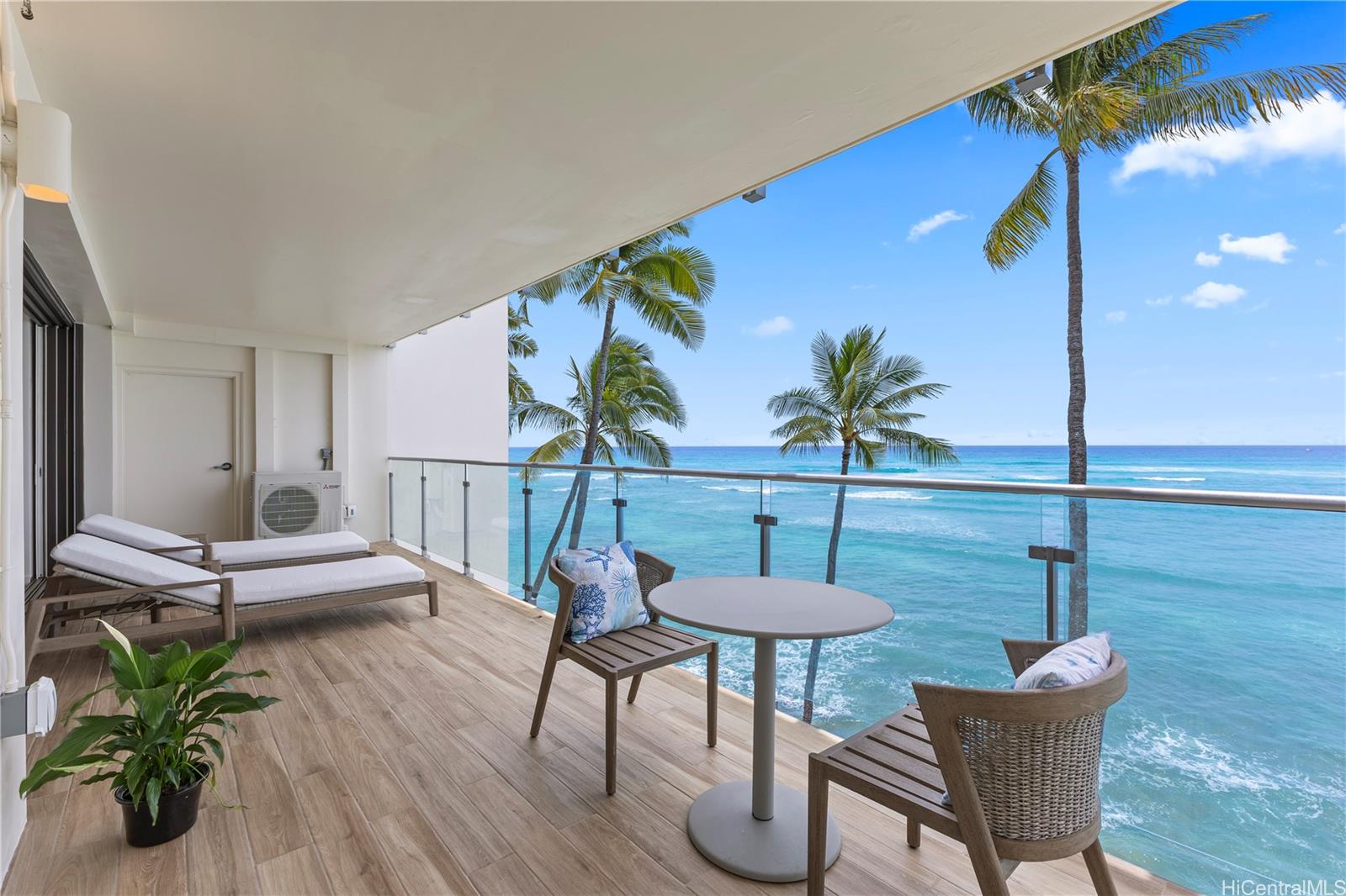 Experience luxurious coastal living in this beautifully renovated oceanfront unit with breathtaking ocean views and the soothing sound of waves. Enjoy sunsets each evening and Honolulu’s city lights by night—all from home. The open layout enhances airflow, bringing the ocean breeze into every room. Each space offers an ocean or Diamond Head view. Two mountain-facing bedrooms provide peaceful Diamond Head vistas. A spacious middle den has a closet, adding flexibility. Newly installed sliding glass doors offer seamless indoor-outdoor living and quiet when closed. The kitchen features a pantry and ample storage. The spa-style bath includes a deep soaking tub with an ocean view and a separate shower. This elegant home blends comfort, thoughtful design, and a prime oceanfront location for exceptional island living. Listing by: Axio Properties (808) 551-0877