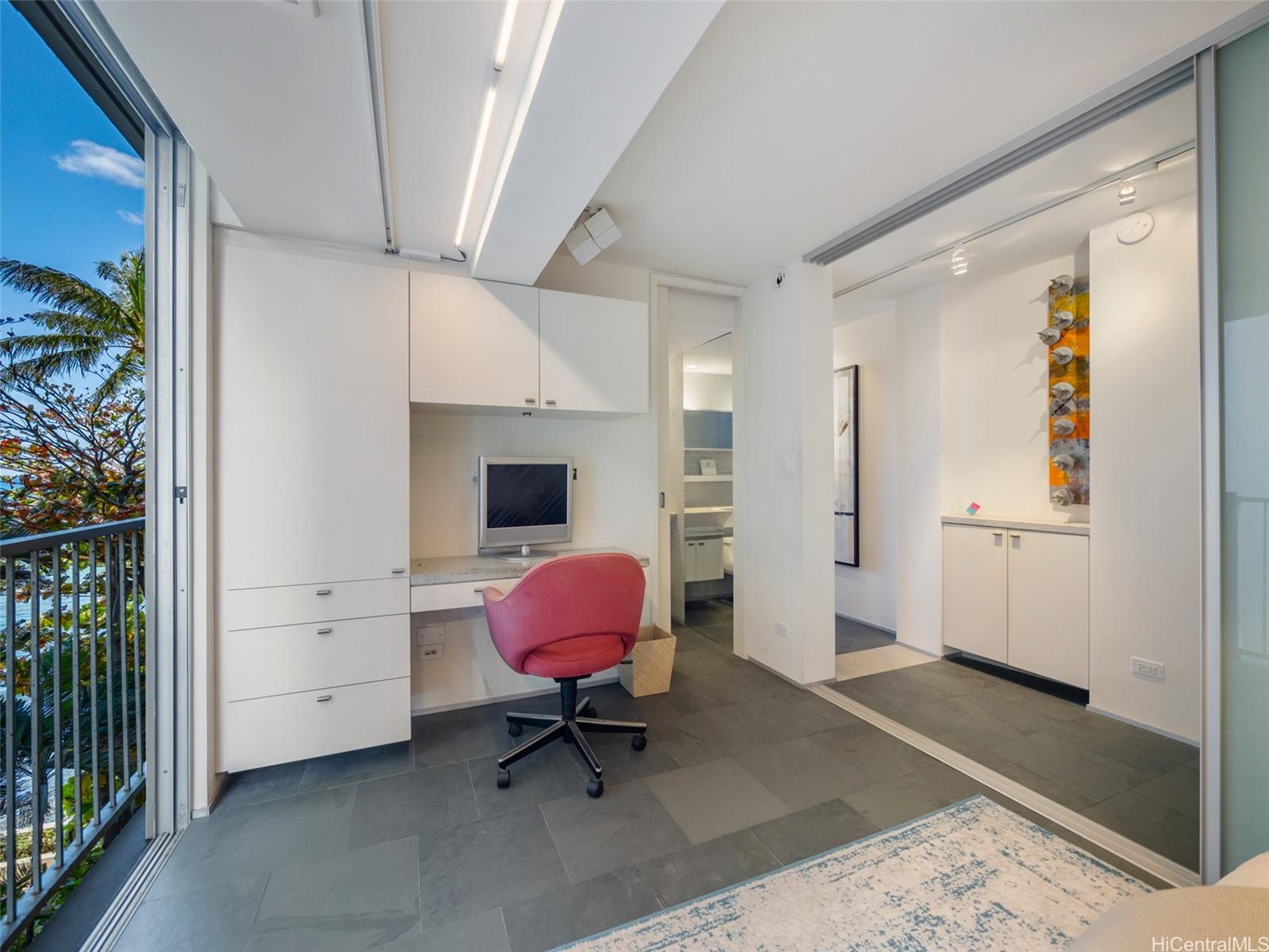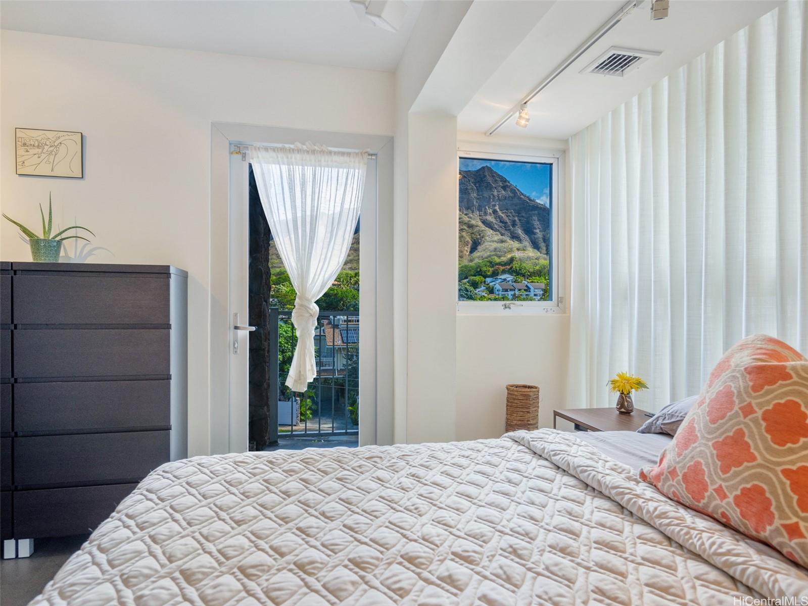 Enjoy seamless indoor-outdoor living with floor-to-ceiling pocketing sliding doors that invite in refreshing trade winds, minimizing the need for the central AC. Amazing views span from iconic Diamond Head to the sparkling Pacific, delivering a daily backdrop of unmatched natural splendor.