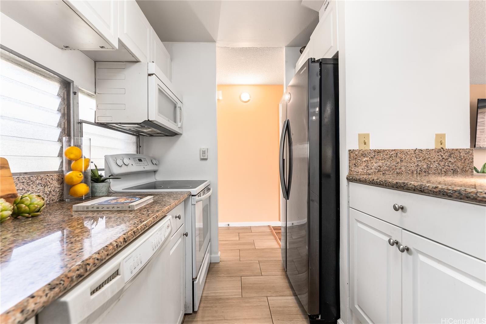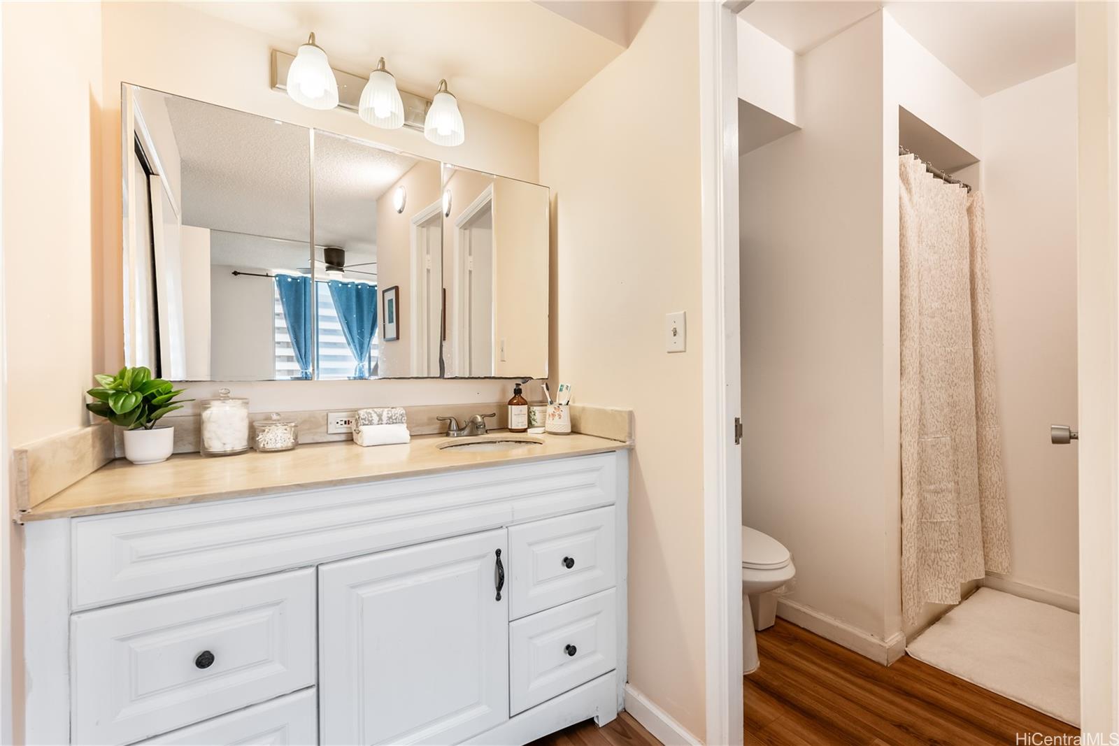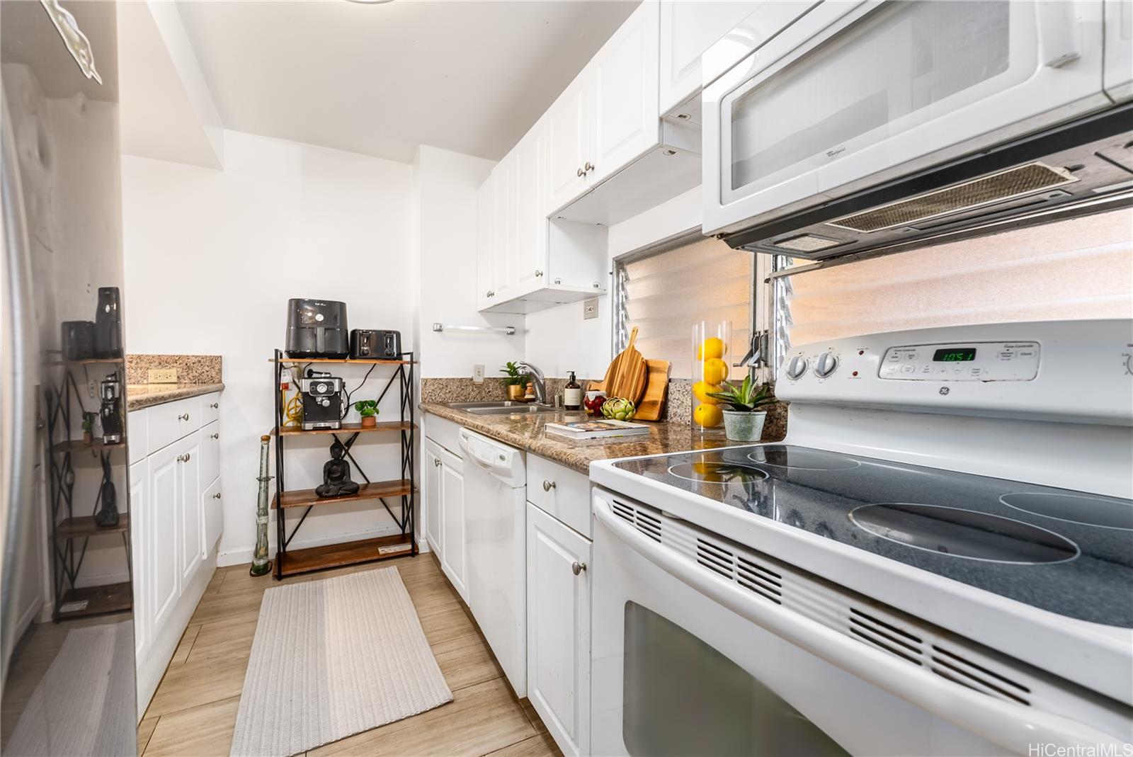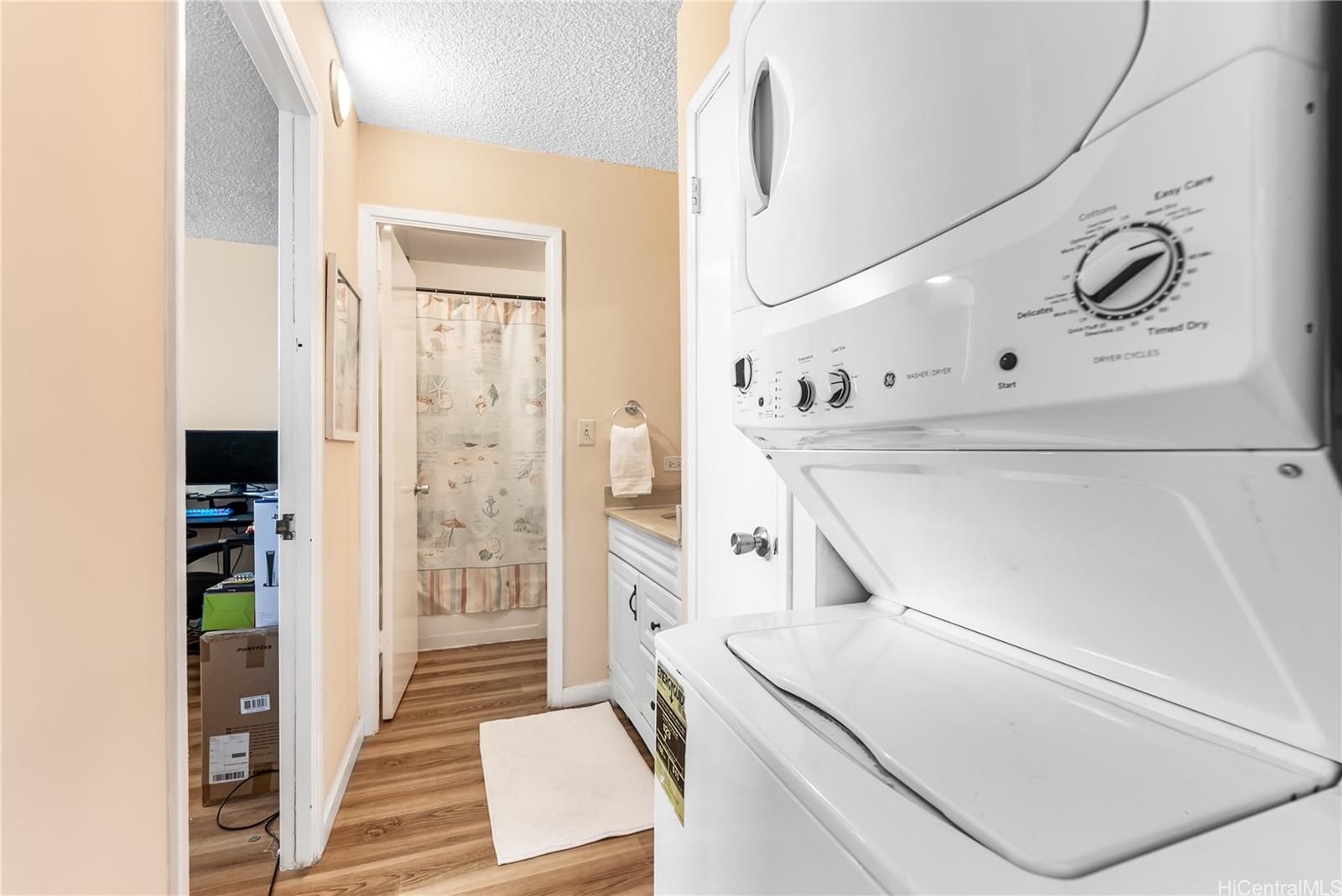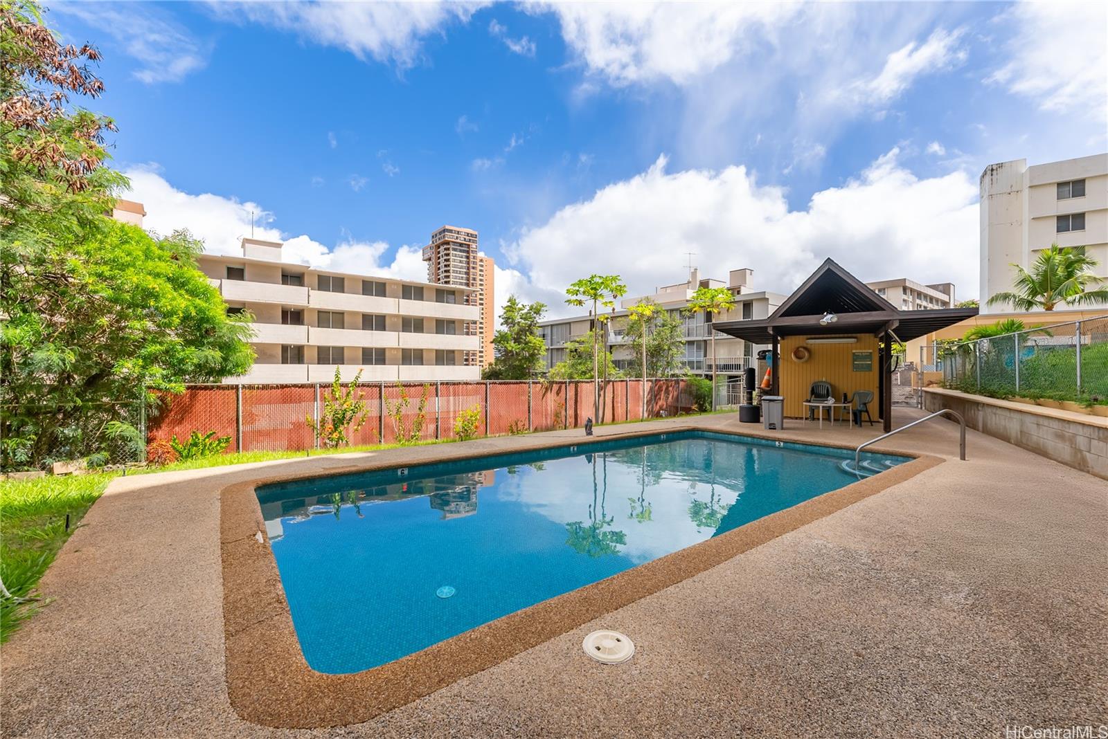 Priced to Sell! Welcome to Kahana Kai, a well-maintained pet friendly boutique condo in the heart of Salt Lake! This spacious 2-bedroom, 2-bath residence offers 901 sq. ft. of interior living space plus a large, private lanai perfect for morning coffee or evening relaxation overlooking the pool. The home features an open floor plan with laminate flooring, a well-appointed kitchen with ample cabinets and a breakfast bar, and an in-unit washer and dryer for everyday convenience. The primary bedroom includes an en-suite bath, while the second bedroom provides flexibility for guests or a home office. Enjoy the security and comfort of a keyed entry building with one assigned parking stall, on-site storage, and a community pool for residents. Conveniently located near Tripler Medical Center, Honolulu Airport, and freeway access to both H-1 and H-3. Experience the best of Salt Lake living — peaceful, affordable, practical, and minutes from everything. Please note that the Pictures are not enhanced, just taken with the property was previously vacant and staged, and now the property IS NOT STAGED and occupied. Property is a distressed property sale but not a short sale. Listing by: Hawaii Life (808) 728-1230