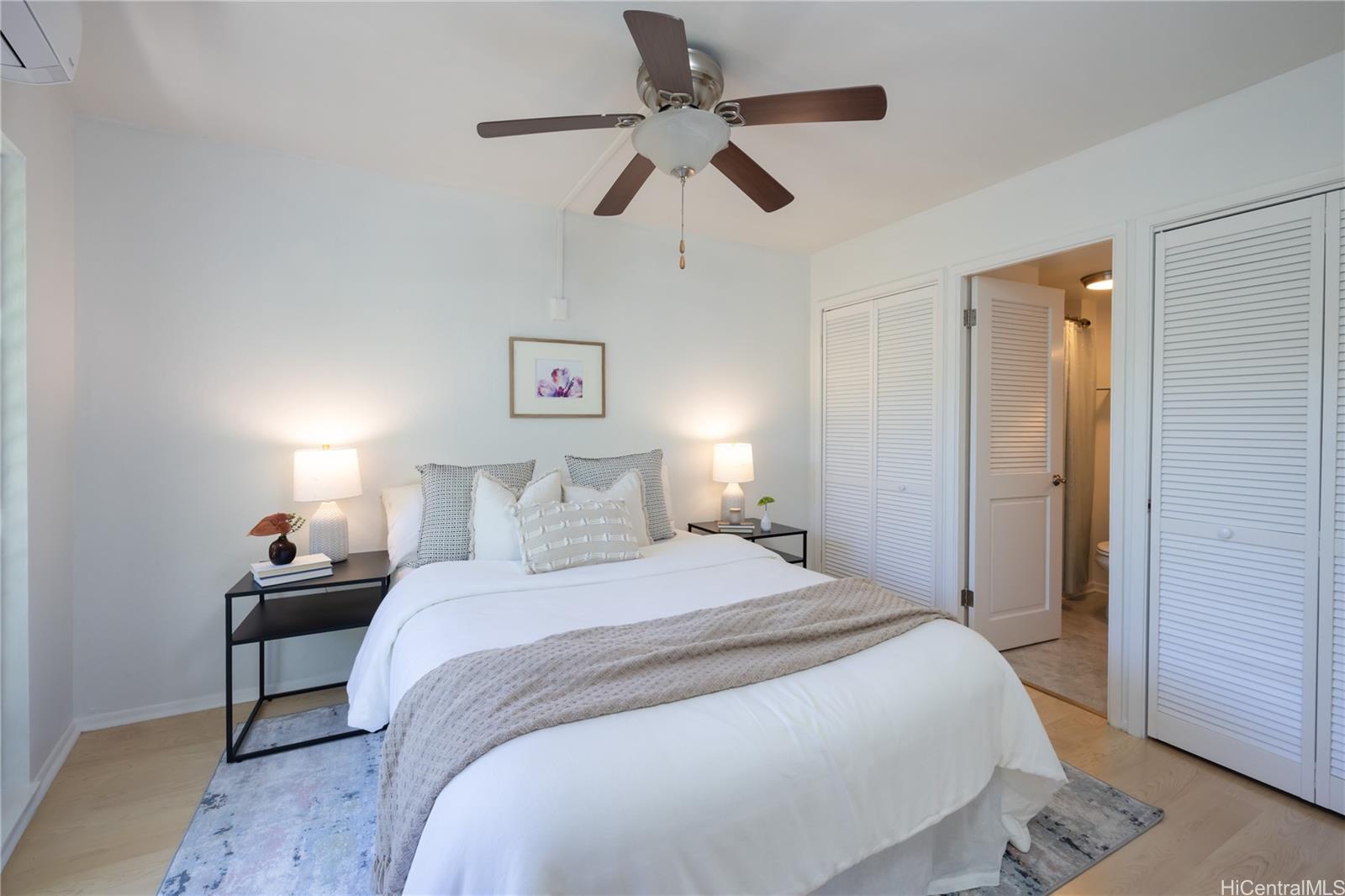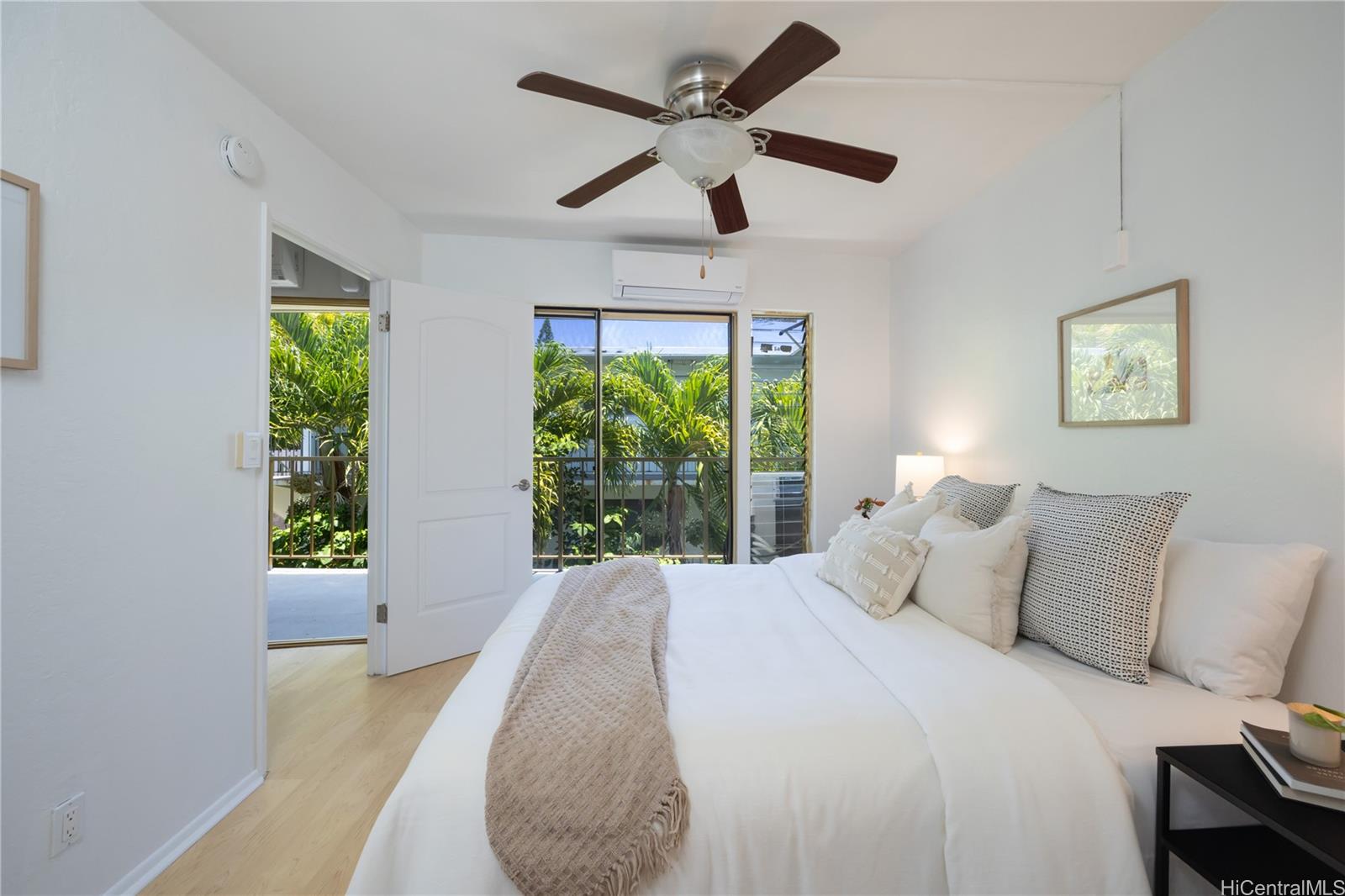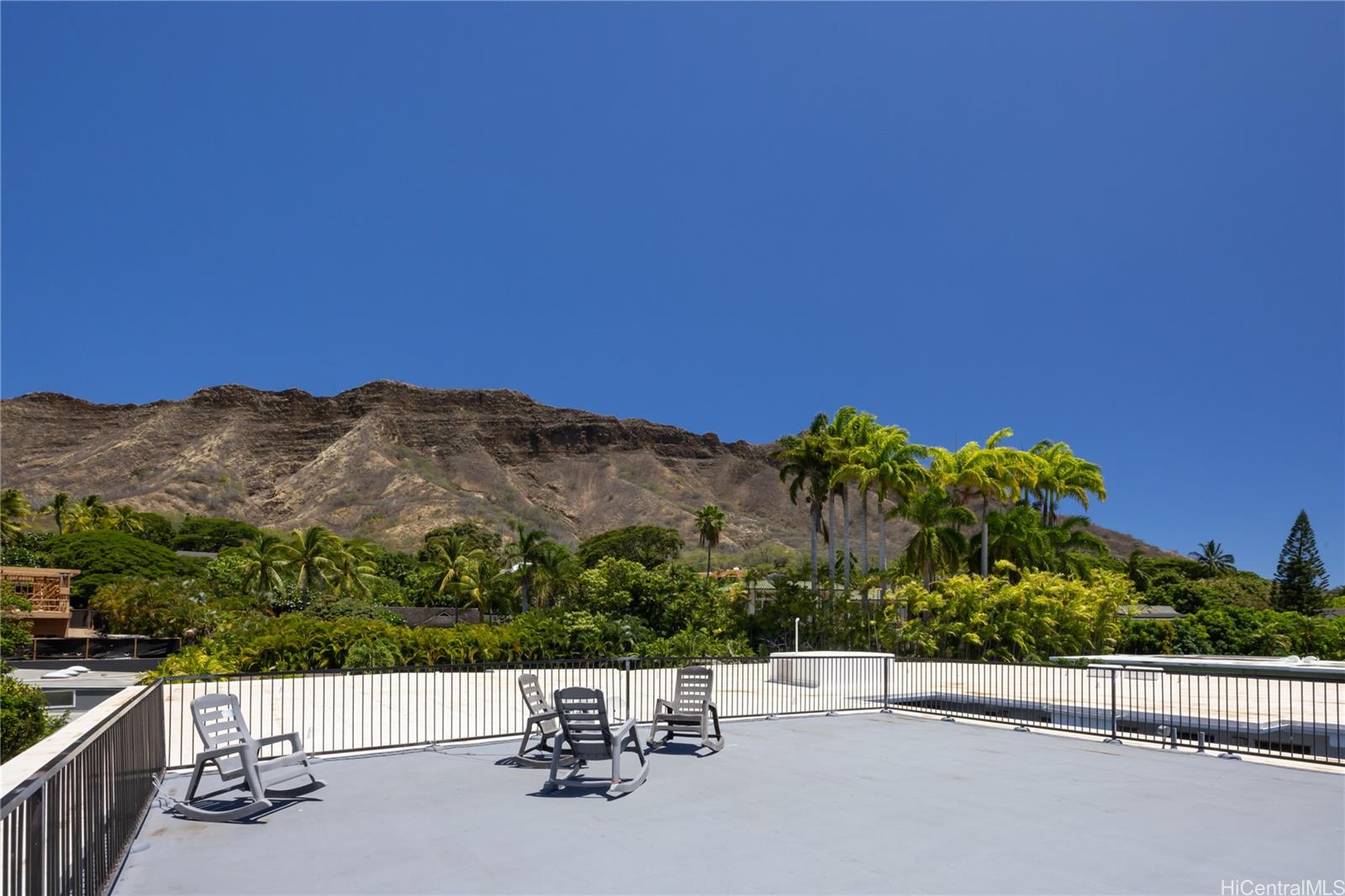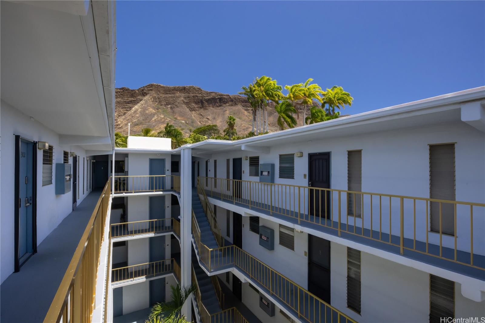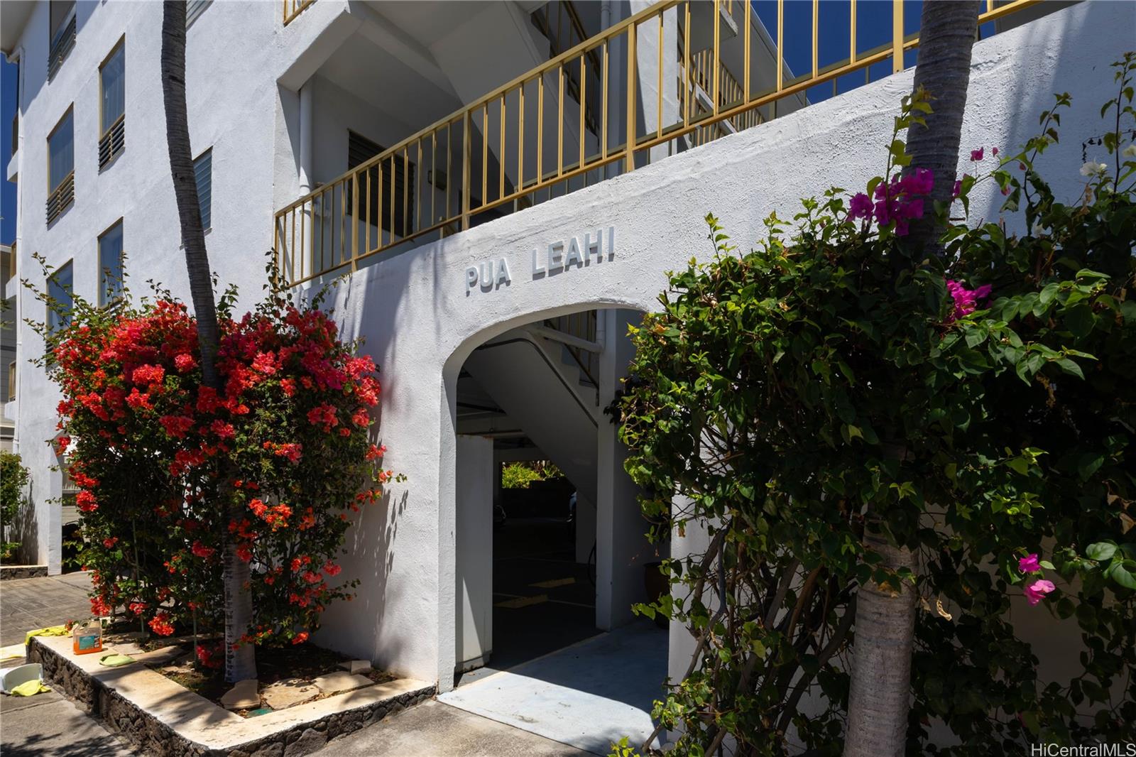 [0] => Just listed on the third floor of Pua Leahi. This 2-bedroom, 2-bathroom unit includes an in-unit washer/dryer, covered lanai with ocean and Diamond Head views, and three split AC units. This three-story walk-up in the Pualei Circle neighborhood has stairs AND an elevator. Parking is located underneath the building so vehicles are protected from the sun and rain. There is also a community laundry area on the ground floor for residents' use. Freshly painted and prepped, this condo is the perfect spot for beachgoers, surfers, and anyone who enjoys using Kapiolani Park and being close to many restaurants and shops. Just on the edge of Waikiki, you have the convenience of town at your fingertips, but can enjoy it from tucked away in Pualei Circle.
