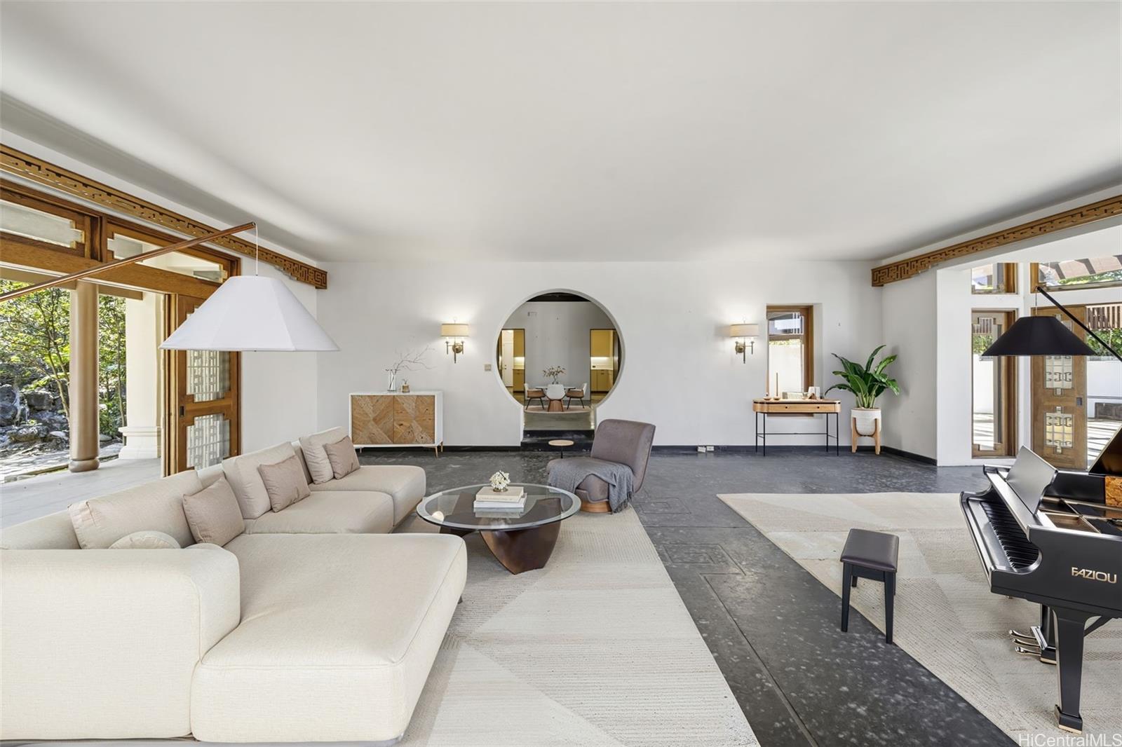 Location, beauty, and privacy come together in a unique estate nestled on the slopes of Diamond Head. This one-of-a-kind Noela Drive villa was originally built in 1934. It seamlessly integrates indoor and outdoor living with an Asian-inspired open floor plan, showcasing captivating views of ocean, Diamond Head and the city. Featuring 4,542 square feet of interior living space built on a 23,148 square feet corner lot of land, this architecturally striking estate offers 6 bedrooms and 4.5 bathrooms. On the main floor, there's a living room, family room, dining room, one bedroom, a caretaker's room, library/media room. The second floor features a spacious primary bedroom and two additional bedrooms. The living room and dining room open to a spacious outdoor pavilion - the ideal space for entertaining or relaxing poolside. From hand painted ceilings to the intricate staircase, doors, and windows, every detail of this estate (formerly owned by Randolph Crossley) is thoughtfully crafted of the highest quality, creating a custom residence - waiting for its new owner to bring it to life again. Listing by: Locations LLC (808) 429-3218
