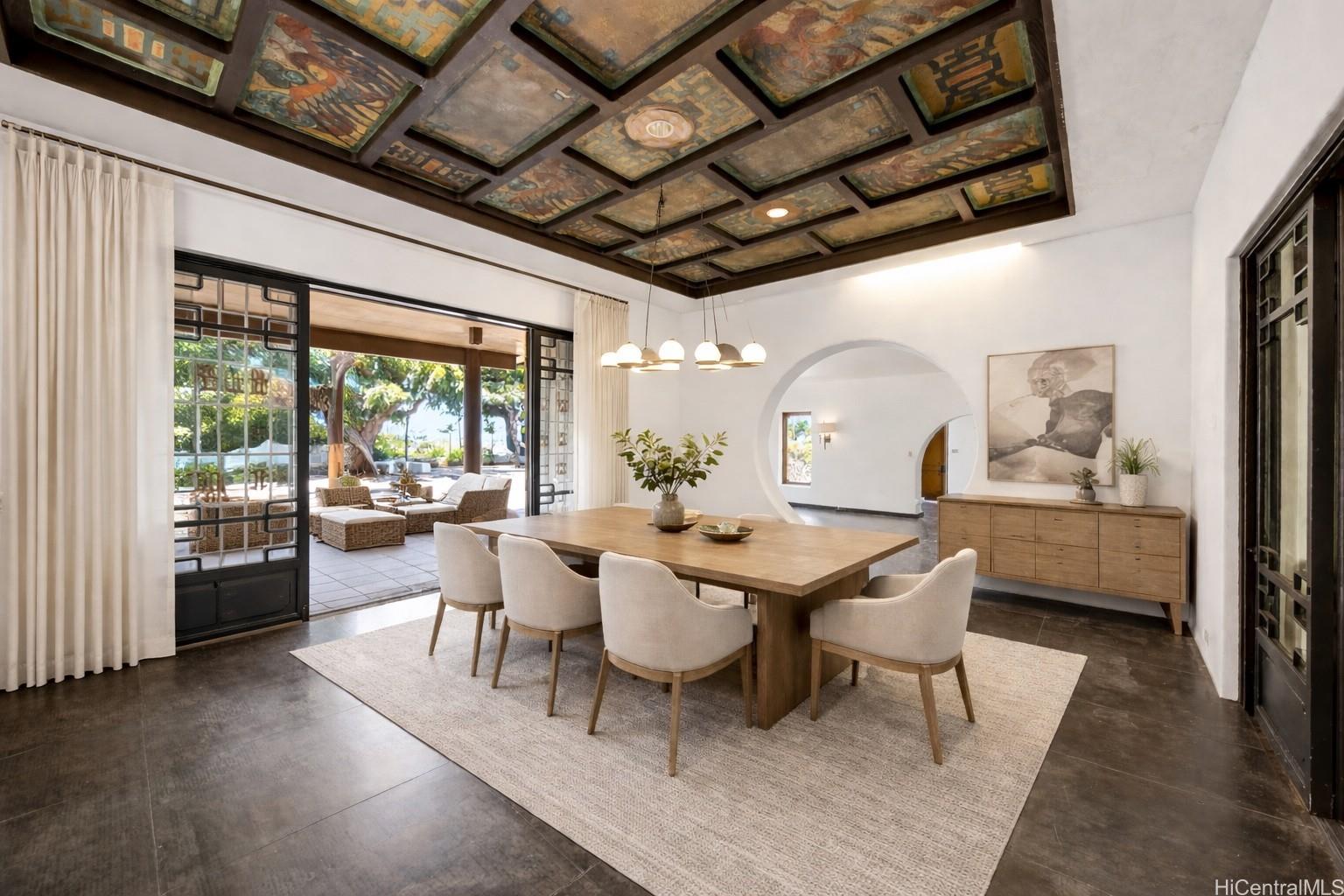 string(1102) "Location, beauty, and privacy come together in a unique estate nestled on the slopes of Diamond Head. This one-of-a-kind Noela Drive villa was originally built in 1934. It seamlessly integrates indoor and outdoor living with an Asian-inspired open floor plan, showcasing captivating views of ocean, Diamond Head and the city. Featuring 4,542 square feet of interior living space built on a 23,148 square feet corner lot of land, this architecturally striking estate offers 6 bedrooms and 4.5 bathrooms. On the main floor, there's a living room, family room, dining room, one bedroom, a caretaker's room, library/media room. The second floor features a spacious primary bedroom and two additional bedrooms. The living room and dining room open to a spacious outdoor pavilion - the ideal space for entertaining or relaxing poolside. From hand painted ceilings to the intricate staircase, doors, and windows, every detail of this estate (formerly owned by Randolph Crossley) is thoughtfully crafted of the highest quality, creating a custom residence - waiting for its new owner to bring it to life again."