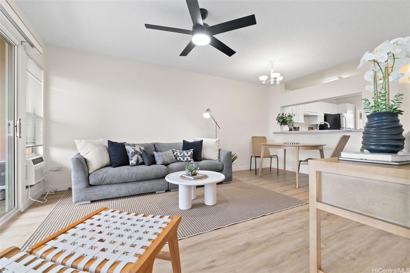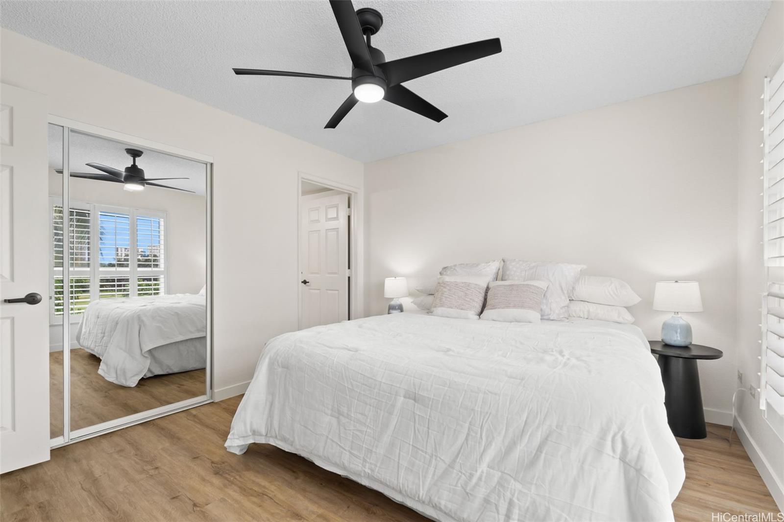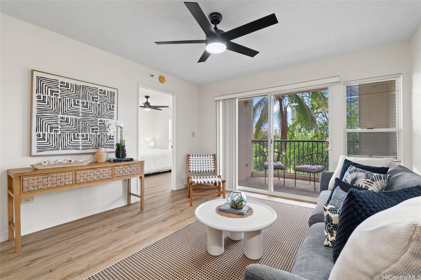 LOCATION! Location! Location! Conveniently located in the heart of Salt Lake, this modern 2-bedroom, 2-bathroom unit offers comfort and convenience. Featuring brand new flooring throughout, the home feels fresh and move-in ready. The open-concept living and dining areas flow seamlessly onto a spacious private lanai with an amazing views. The primary suite comes with its own bathroom and ample closet space. A washer and dryer are conveniently located in-unit, and two assigned parking stalls add to the ease of living. Country Club Village is a pet-friendly building with amenities including a pool, BBQ area, walking paths, and 24-hour security. Located near great schools like Salt Lake Elementary, Moanalua Middle and High School. Offers quick commute to military bases such as Hickam, Tripler, and Fort Schafter within 5~7 minutes. Enjoy shopping, dining, golf courses, and quick freeway access nearby. Open House : Sunday 1-4PM Listing by: Real Broker (855) 450-0442
