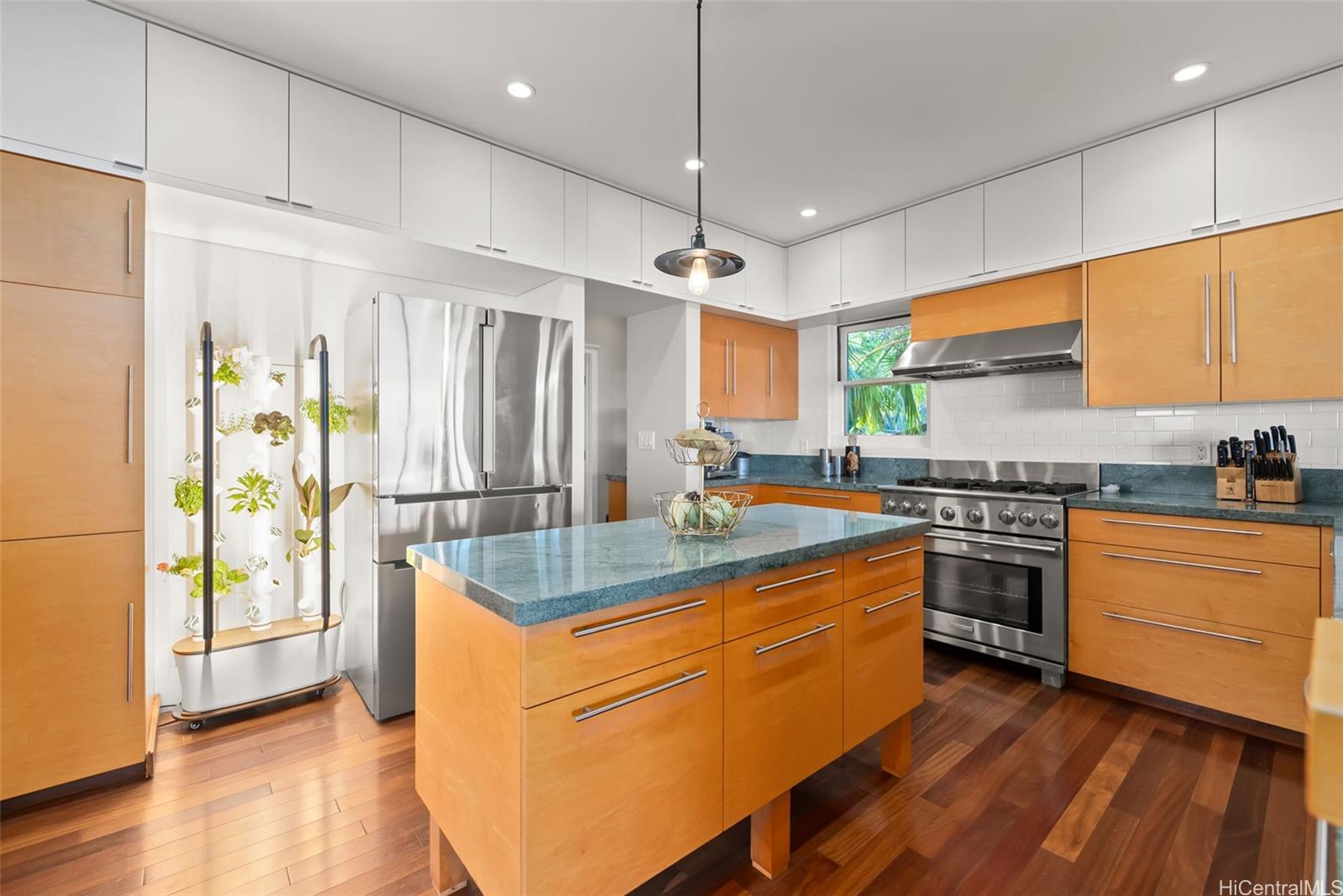 [0] => NEW LISTING!! Unobstructed, panoramic ocean and mountain views await you from this gracious 5 bdrm/2.5 bath home PLUS a separate studio/1 bath guest quarters in highly desirable Pacific Heights. Steeped in classic island charm, the main home features an open floor plan that flows seamlessly to a spacious covered lanai, beautiful wood floors, and stunning views. The chef’s kitchen includes a gas range and stainless-steel appliances. Additional highlights include new carpet, engineered and hardwood flooring, and multiple outdoor areas ideal for relaxed indoor/outdoor living. The separate guest quarters offers vinyl plank flooring, a large covered deck, and a private entry. The exterior of both dwellings has been freshly painted, and the expansive backyard provides the perfect setting for relaxation. Experience the rare blend of comfort, charm, and sweeping island vistas that make this property truly special. A must-see!